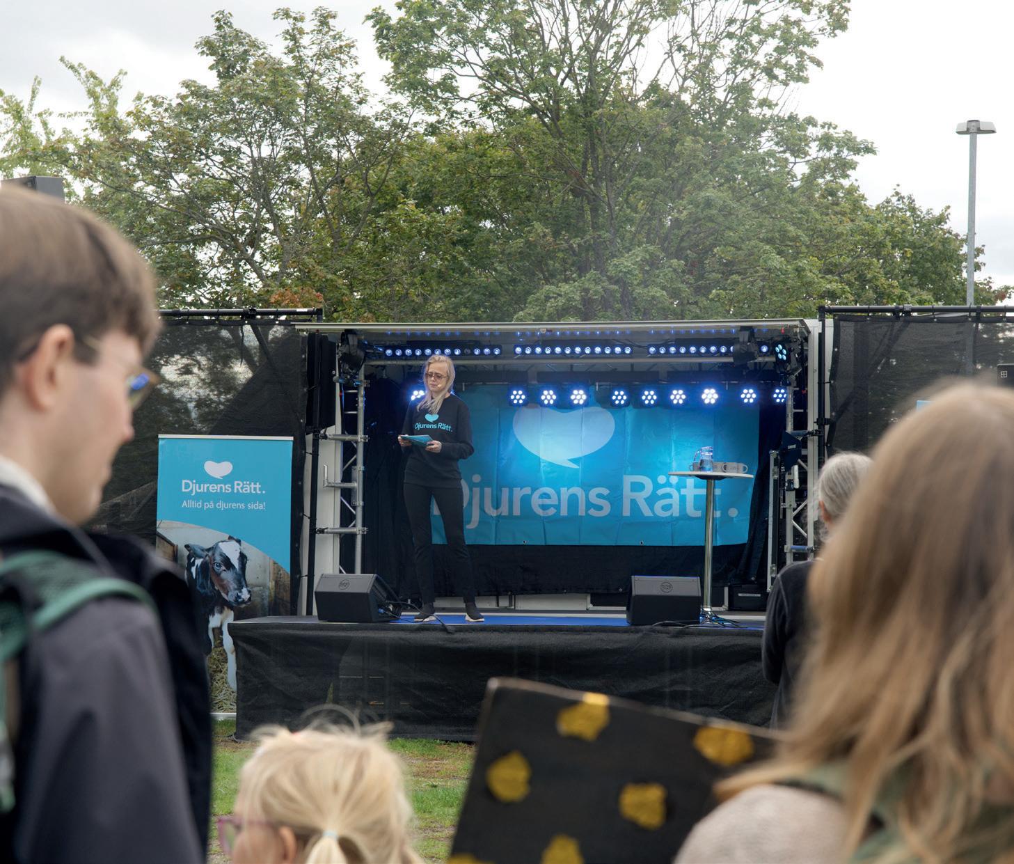Dagen inleddes av vår riksordförande Tina Hogevik, som betonade vikten av att fortsätta kämpa för att bevara och utöka beteskravet, trots regeringens besked. På scenen medverkade även Camilla Bergvall, författare och tidigare riksordförande för Djurens Rätt.