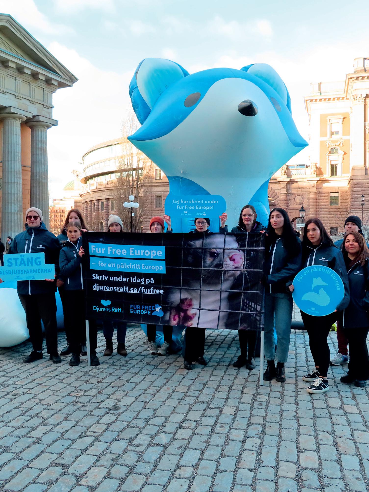 inga minkar längre hålls i burar i Sverige – ett resultat av mer än fem decennier av kamp. Bakom denna framgång ligger ett enormt arbete: från kampanjer där hundratusentals flygblad har delats ut, demonstrationer som samlat tusentals människor och rekordstora namninsamlingar – till dialog med hundratals klädföretag för att få dem att anta pälsfria policys. Varje steg har fört oss närmare målet: att inga djur ska dödas för sin päls.