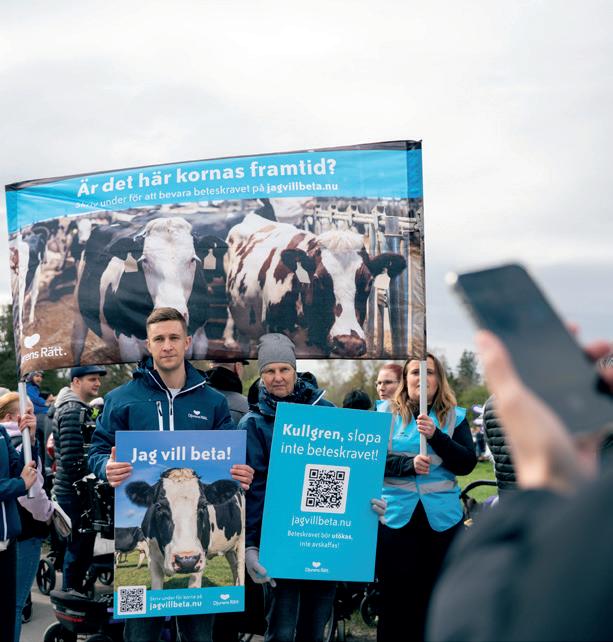 I mars överlämnade vi 165 076 namnunderskrifter, för kornas rätt att beta, till riksdagsledamöter, kombinerat med en uppmärksammad manifestation utanför riksdagshuset. Vi arrangerade även en aktion i samband med ett av de årliga kosläppen för att uppmärksamma betesfrågan, och genomförde ett riksdagsseminarium med forskare för att sprida kunskap och skapa dialog.