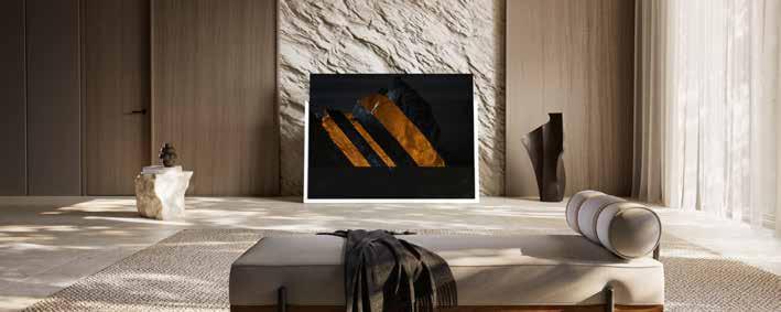 Hoogwaardige materialen en een 360-graden design zorgen voor een ongeëvenaarde esthetische ervaring. De exclusieve displayafdekking van echt beton of echte lava** en het frame van geborsteld aluminium creëren een uniek design. **alleen 42” tot 65”.