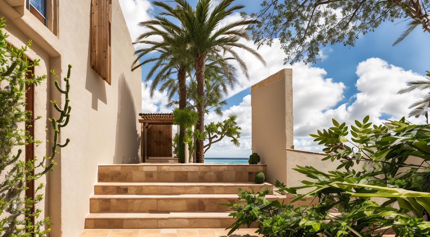 Plantas y árboles frondosos, así como palmeras y cactus