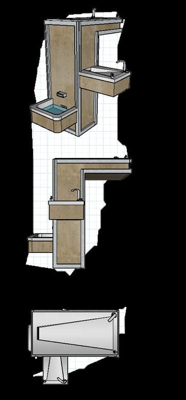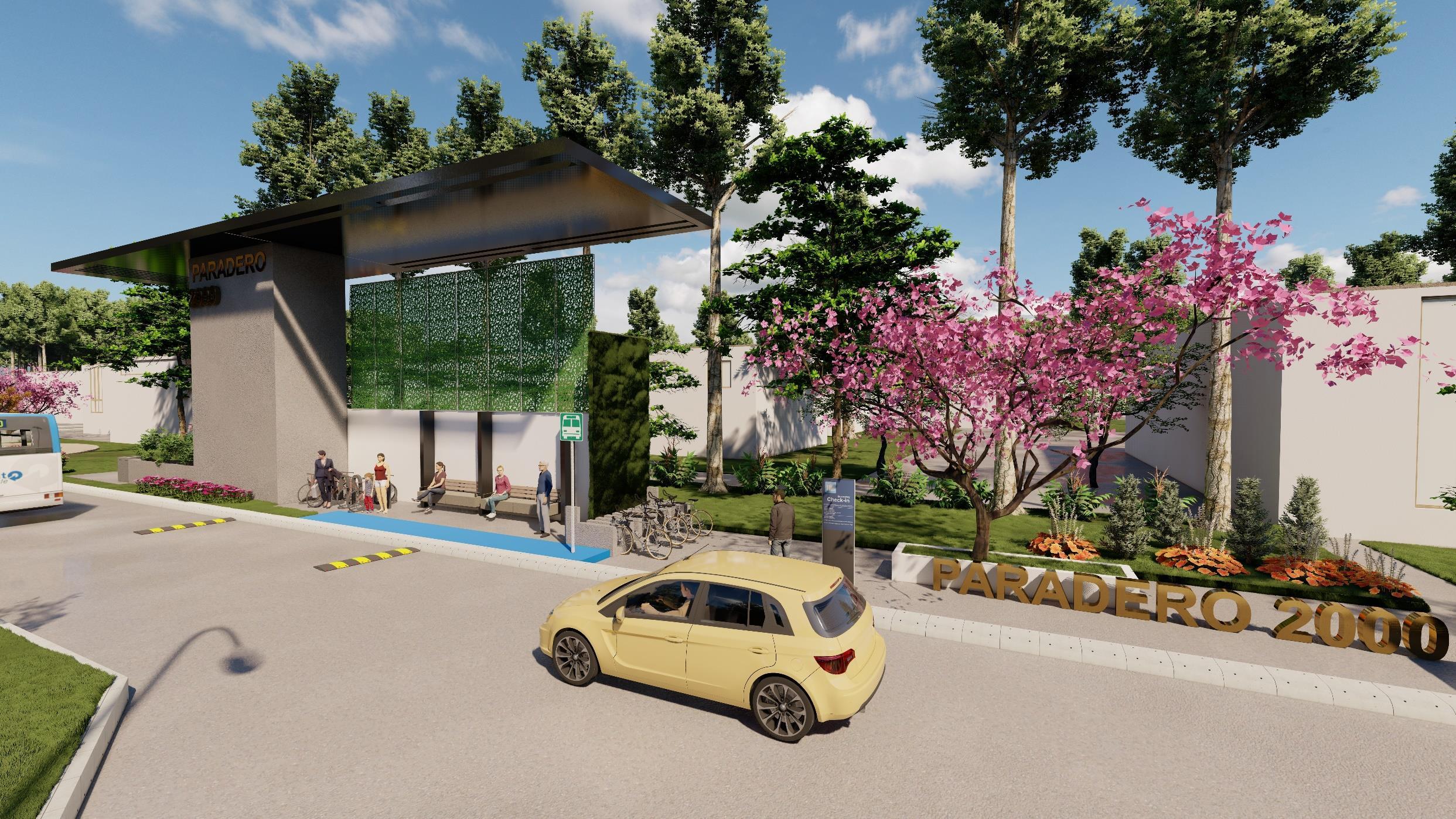 En esta perspectiva se puede observar la posterior del paradero, en la se empleó 4 bebederos para las mascotas y lavamanos para usuarios. Teniendo como objetivo brindar una mejor traza urbana de movilidad.