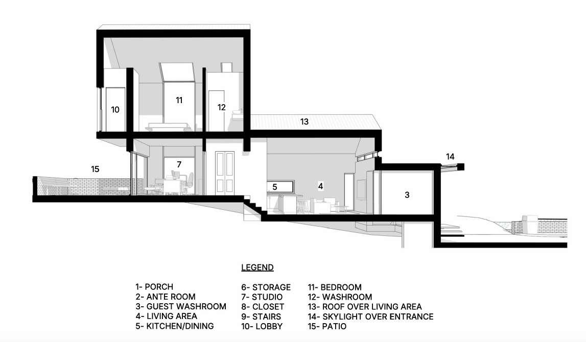 Description: As part of the JVS+TMU IPLAN program The schematic design of a two storey 100sqm building area villa residence for an architect on a hilly site