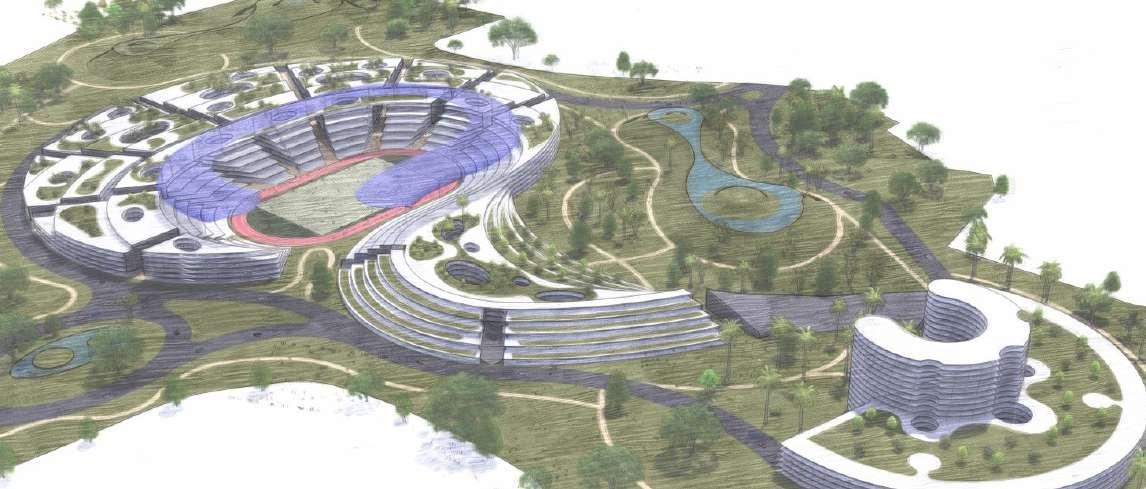 Description: A design competition team entry for a multi-use stadium facility on a waste landfill site in Lagos that adapts and changes into residential, shopping and other commercial facilities when not in use as a stadium Phases: Pre-design. Schematic Design. Softwares: Revit. SketchUp. Lumion. Photoshop. Status: Concept
