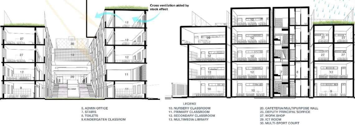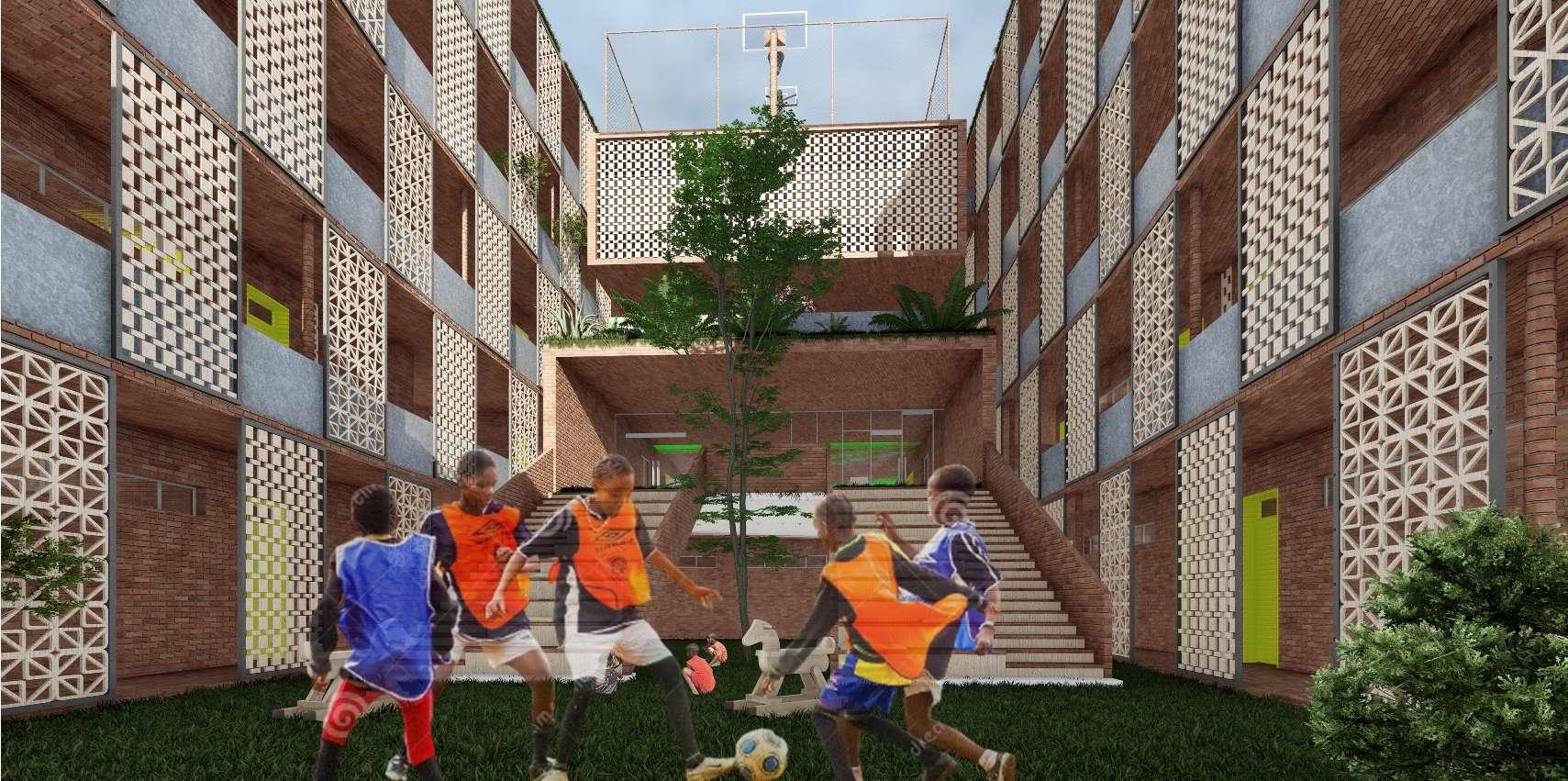 Description: A design competition team entry for an urban community school in Bamako developed from a rich list of considerations including creating a fun and conducive learning environment, fluid movements and accessibility, climate responsiveness, resource and material availability, cost, and construction feasibility. Phases: Pre-design. Schematic Design.