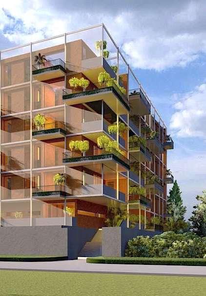 Description: A proposed schematic design set for a 6-storey apartment block that comprises of 3 Bedroom apartments and 4 Bedroom Maisonettes with a communal leisure area, pool, greenery with adequate support facilities and car parking. The design concept is very intent on creating a communal block which brings the outside to the inside and loses the constricted apartment block feeling. Phases: Pre-design Schematic Design Softwares: Revit Lumion PowerPoint Status: Concept.