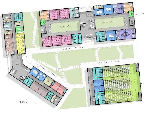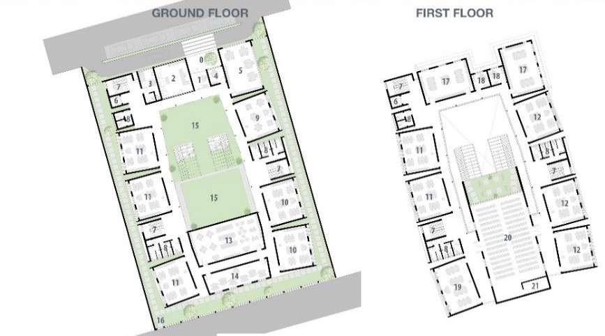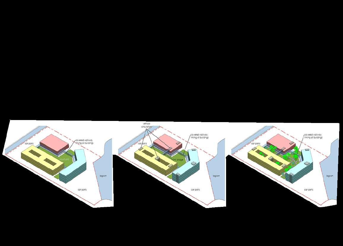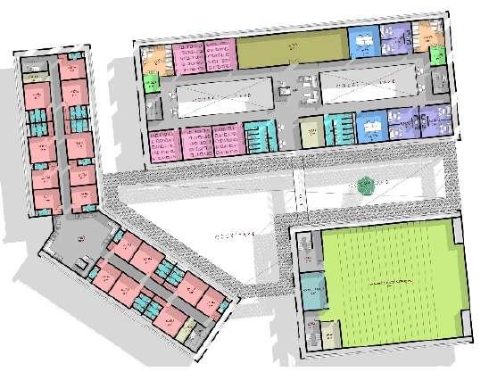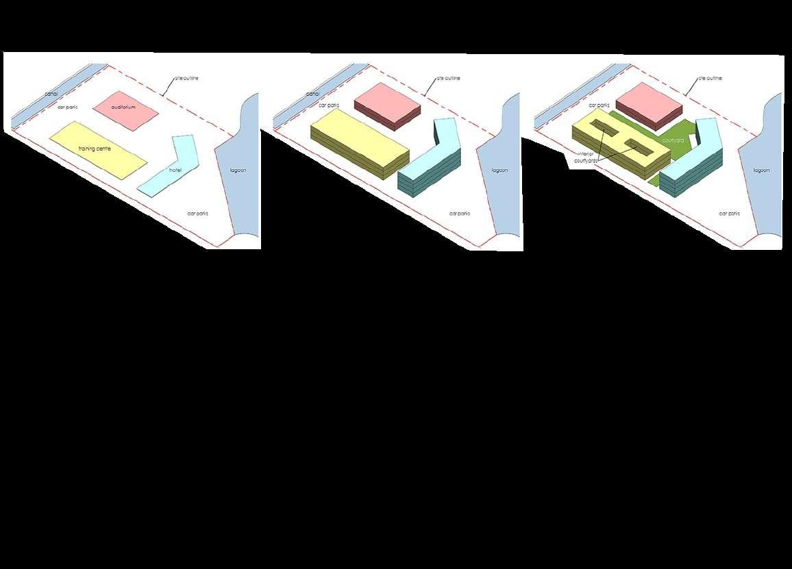 Description: A proposed schematic design competition entry for a training facility where the brief required provision of a training block with offices and training classrooms, an auditorium block and a hotel block as residences when need arises.