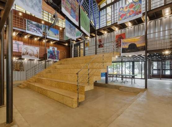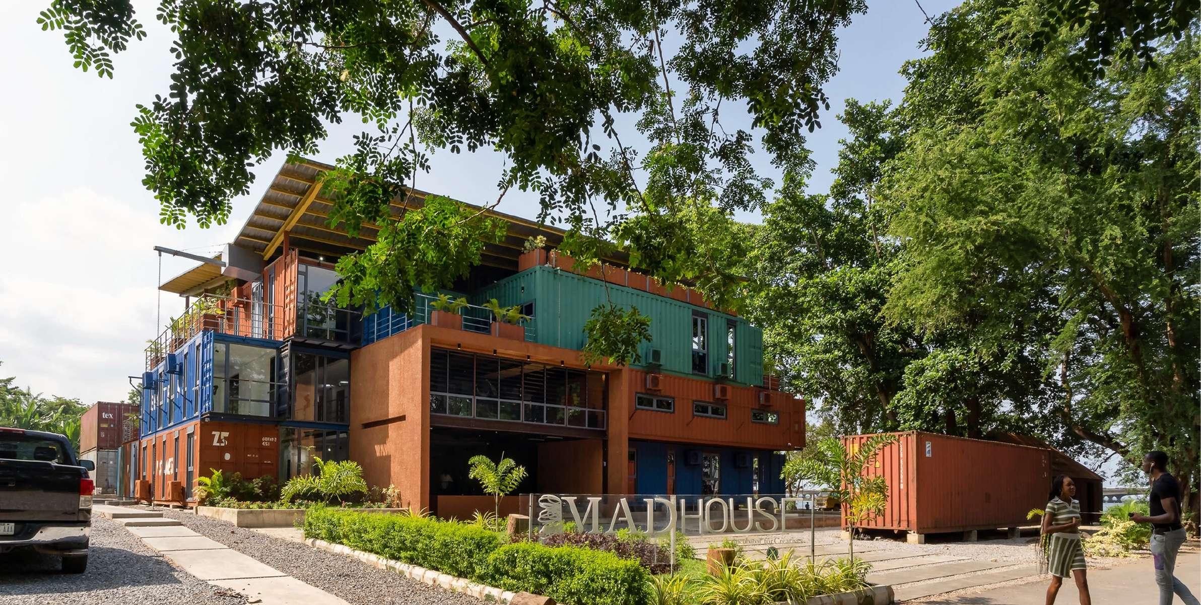 Description: A 700sqm, three-storey creative hub facility by the lagoon-front in the University of Lagos Built mostly with recycled shipping containers and a structural steel support system