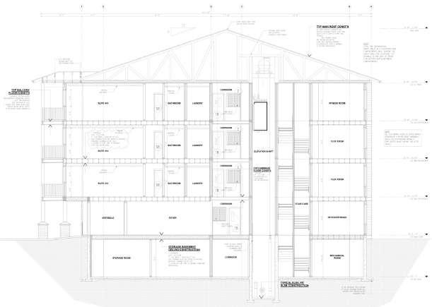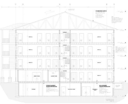 Description: A working drawing document for a built four-storey residential timber apartment building in Edmonton I reproduced as part of the completion requirements for an architecture training program. The drawings were done to acquire a comprehensive understanding of National Building Code NBC AE 2023, in its application and interpretation with respect to limiting distances, major occupancies, and fire protection Phases: Construction Document Softwares: Revit. Status: Built.