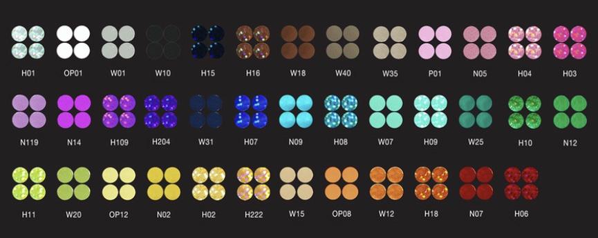 Aurora Borealis(AB), Crystal, Black Diamond, Jet, Light Siam, Hyacinth, Sun, Citrine, Light Topaz, Peridot, Emerald, Indigo, Sapphire, Blue Zircon, Aquamarine, Tanzanite, Amethyst, Fucshia, Rose
