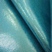 This exquisite garment features a Mykonos lycra bodice with Nude lycra and Teal glitter mesh overlay. Zircon mystique applique is spread across the front and back to emphasize the design’s effect. Full length Teal glitter mesh sleeves, Aurora Borealis and Aquamarine rhinestones complete this leotard.