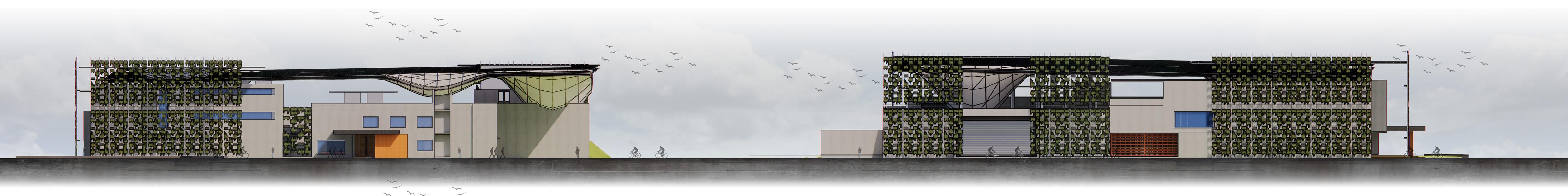 • Canopy Design: Flowing, organic-inspired canopy at the entrance, offering shade and visual identity.
