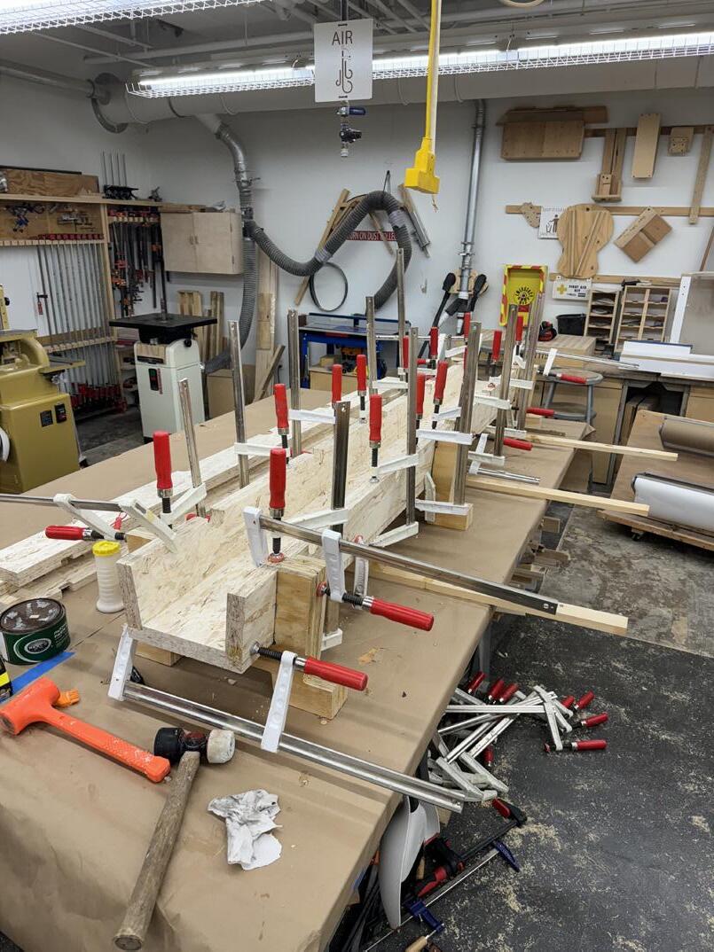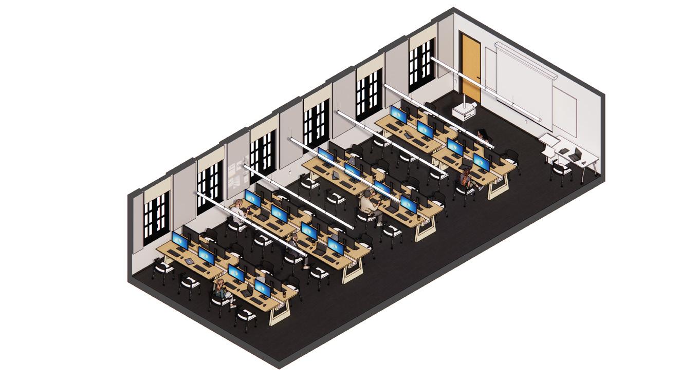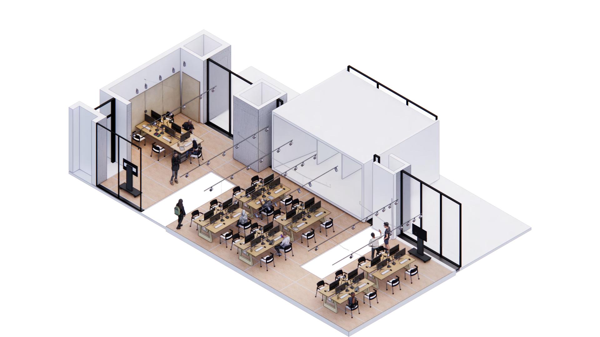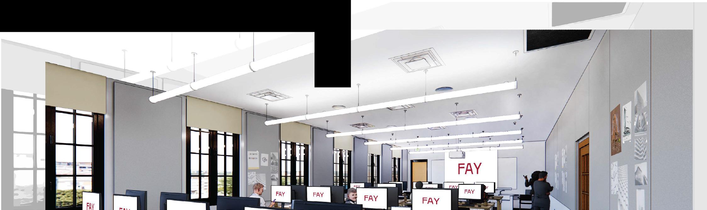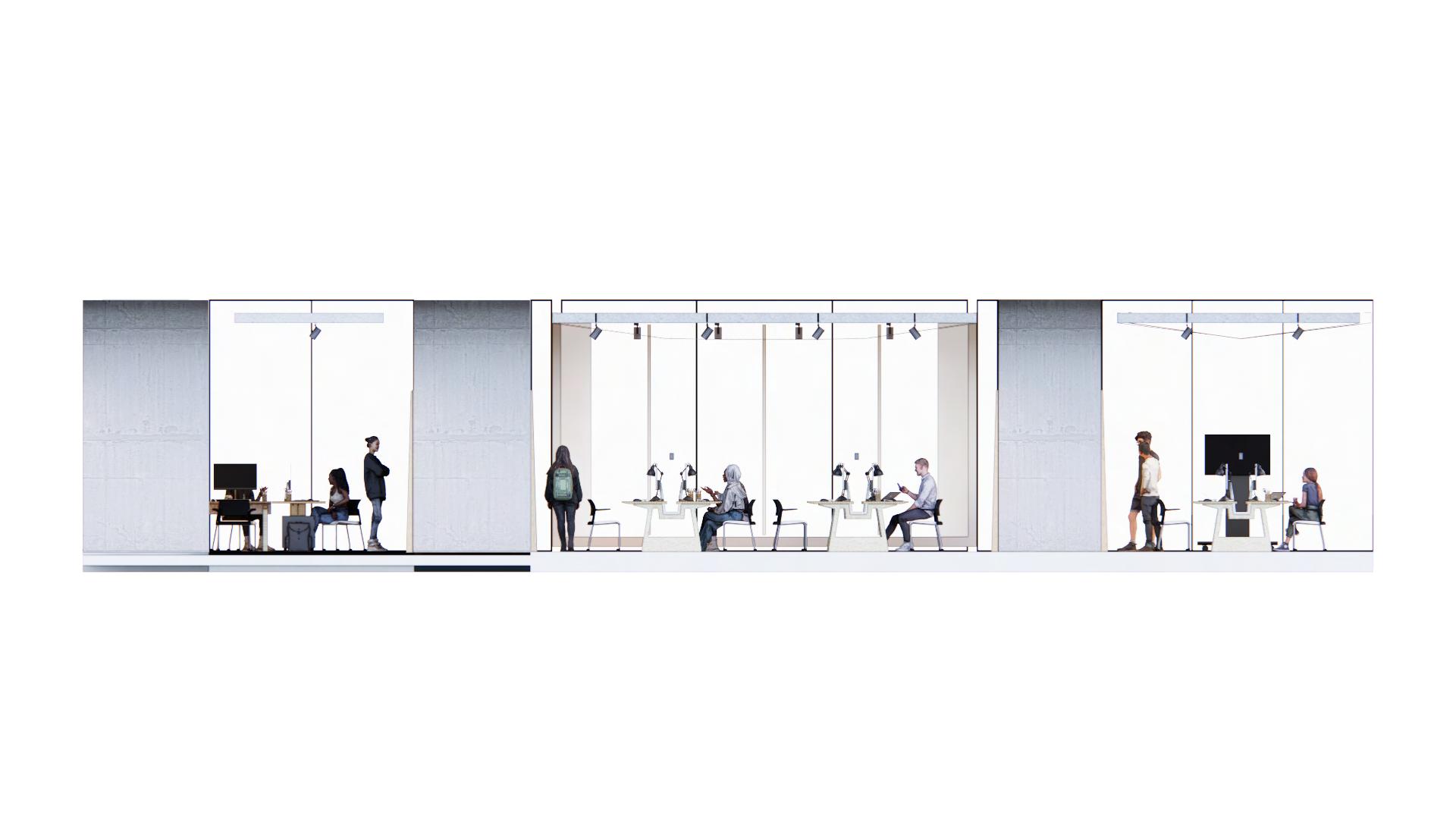 with growing student enrollment, two in-house spaces needed to be temporarily re purposed as student studios. by utilizing developing skills in design conceptualization, spatial planning, rendering and technical drawing, these spaces were transformed into functional studios, complete with custom student-designed and fabricated tables that promote collaboration.