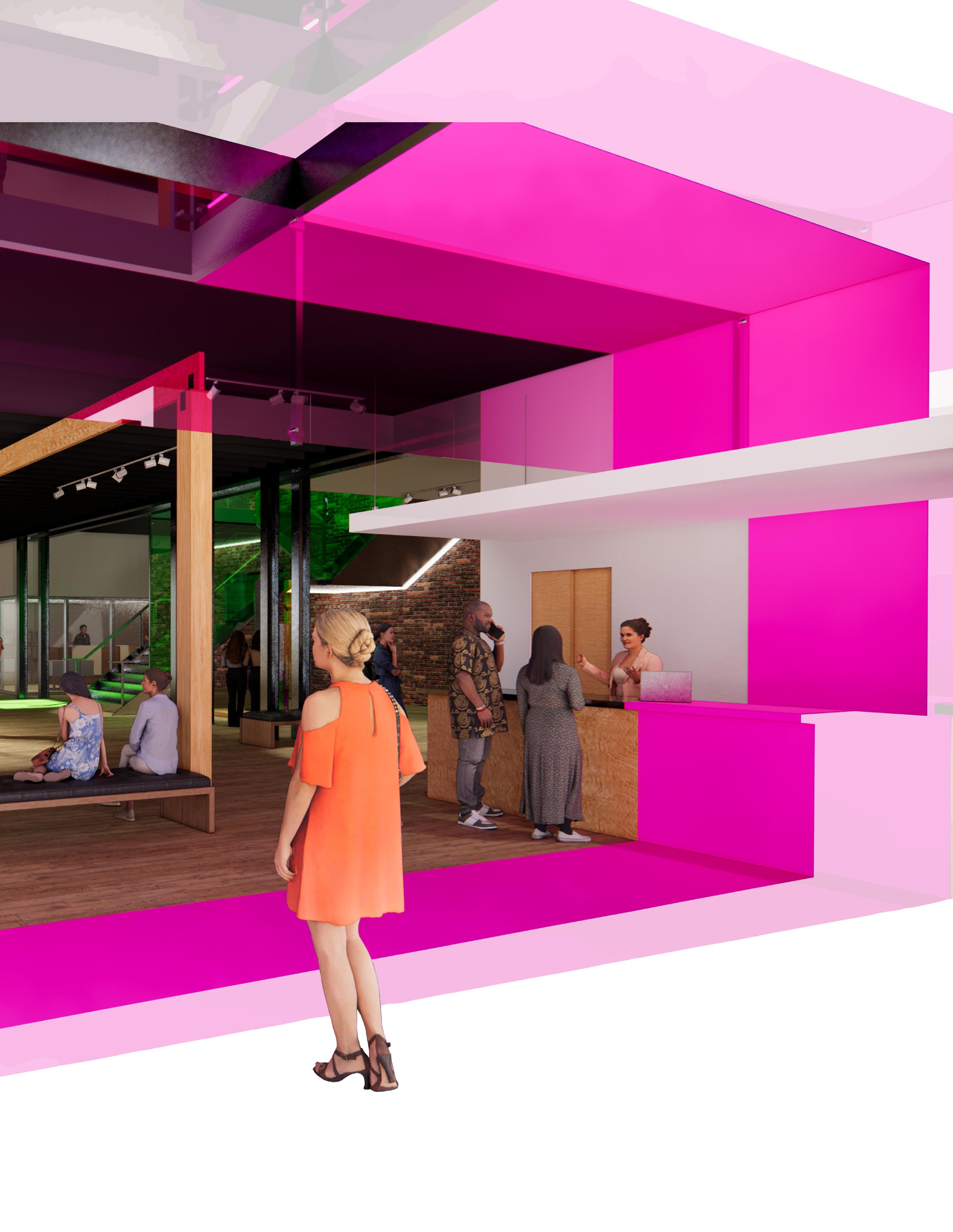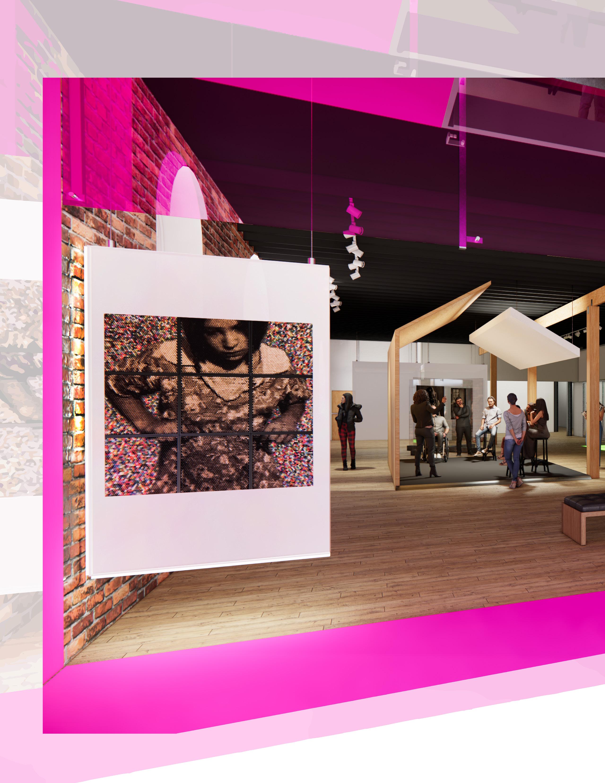 26 is a community art space that welcomes people of all ages, backgrounds, and abilities to celebrate art. it offers an engaging gallery experience while serving as a reminder of societal inequities. by challenging the sterile “white cube” gallery model, 26 blends contemporary design with the raw materiality of its historic structure, using recognizable, affordable materials to create a familiar and socially accessible space for all.