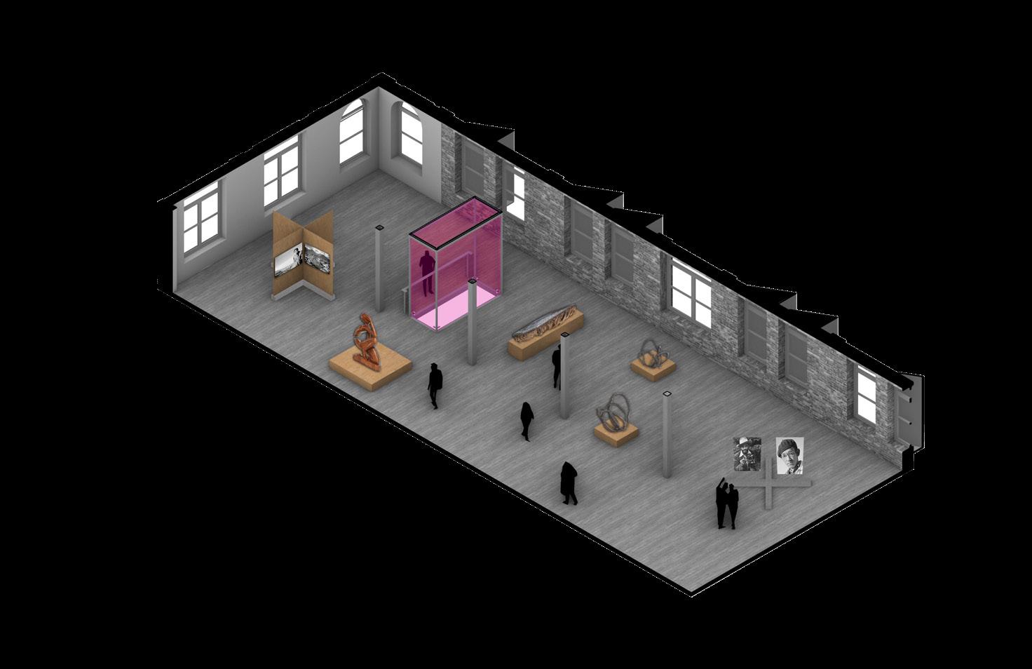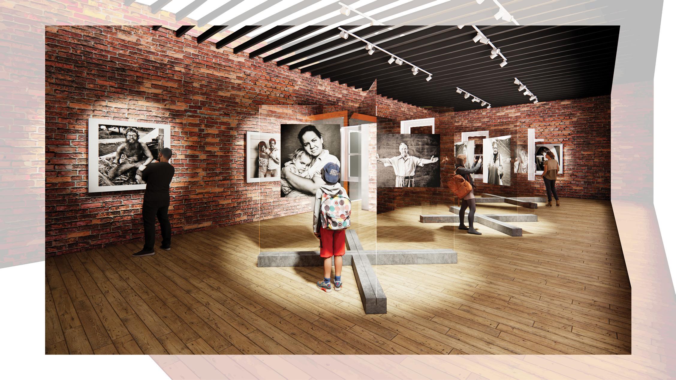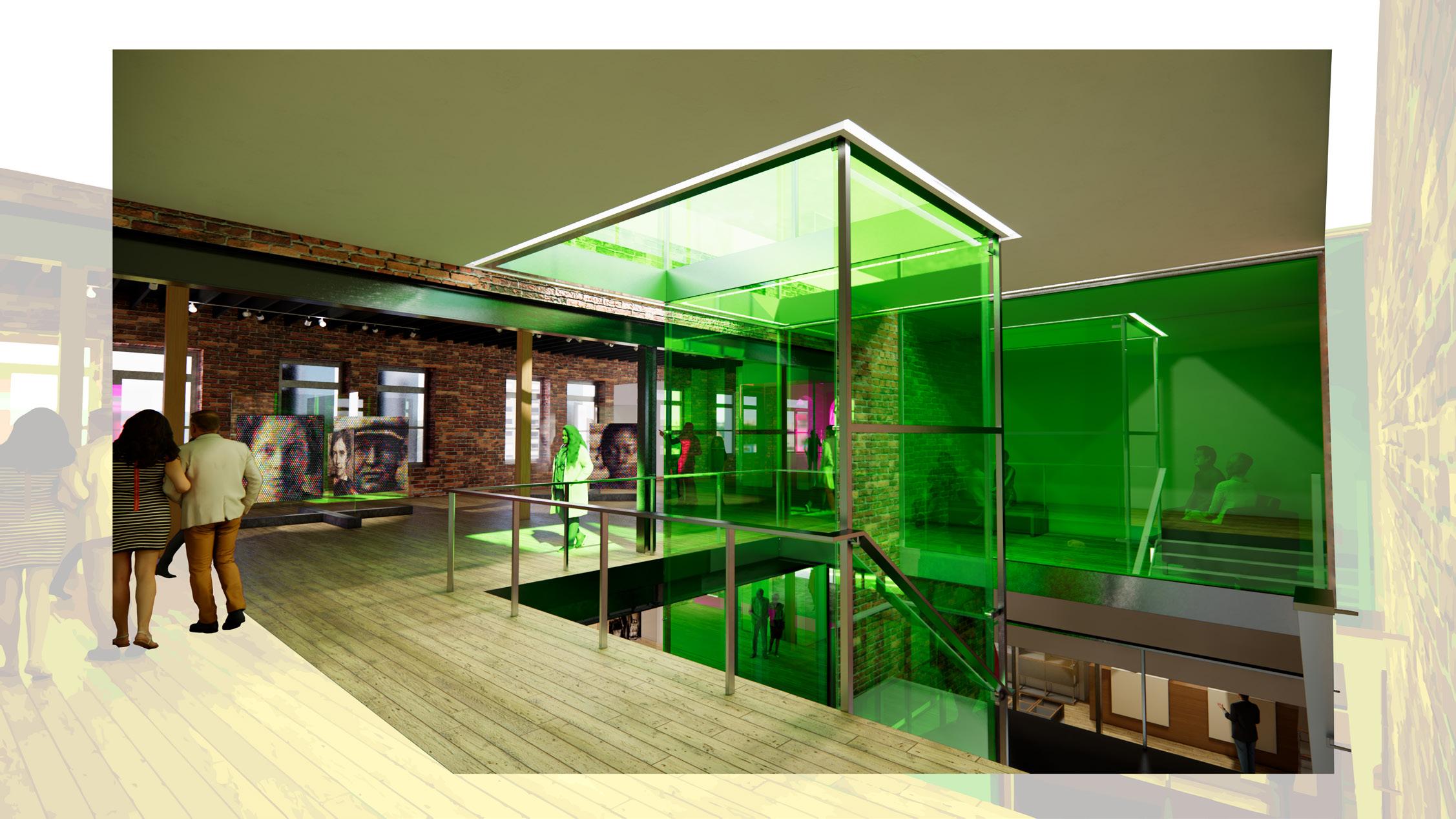 the flexible gallery space located on the second floor allows for a variety of traveling exhibits.