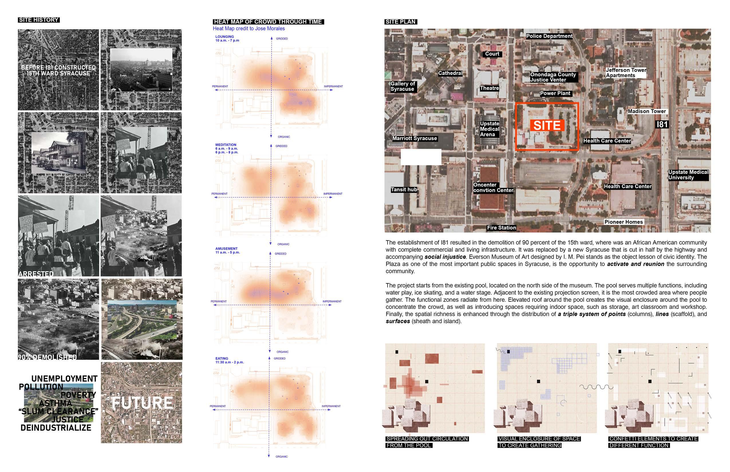 Leisure as Public Stage is a renovation project on the Plaza of Everson Museum of Art, activating Syracuse community by bringing various public program and activities, including open air cinema, seasonal market and sculpture garden.