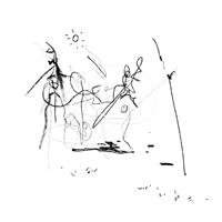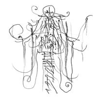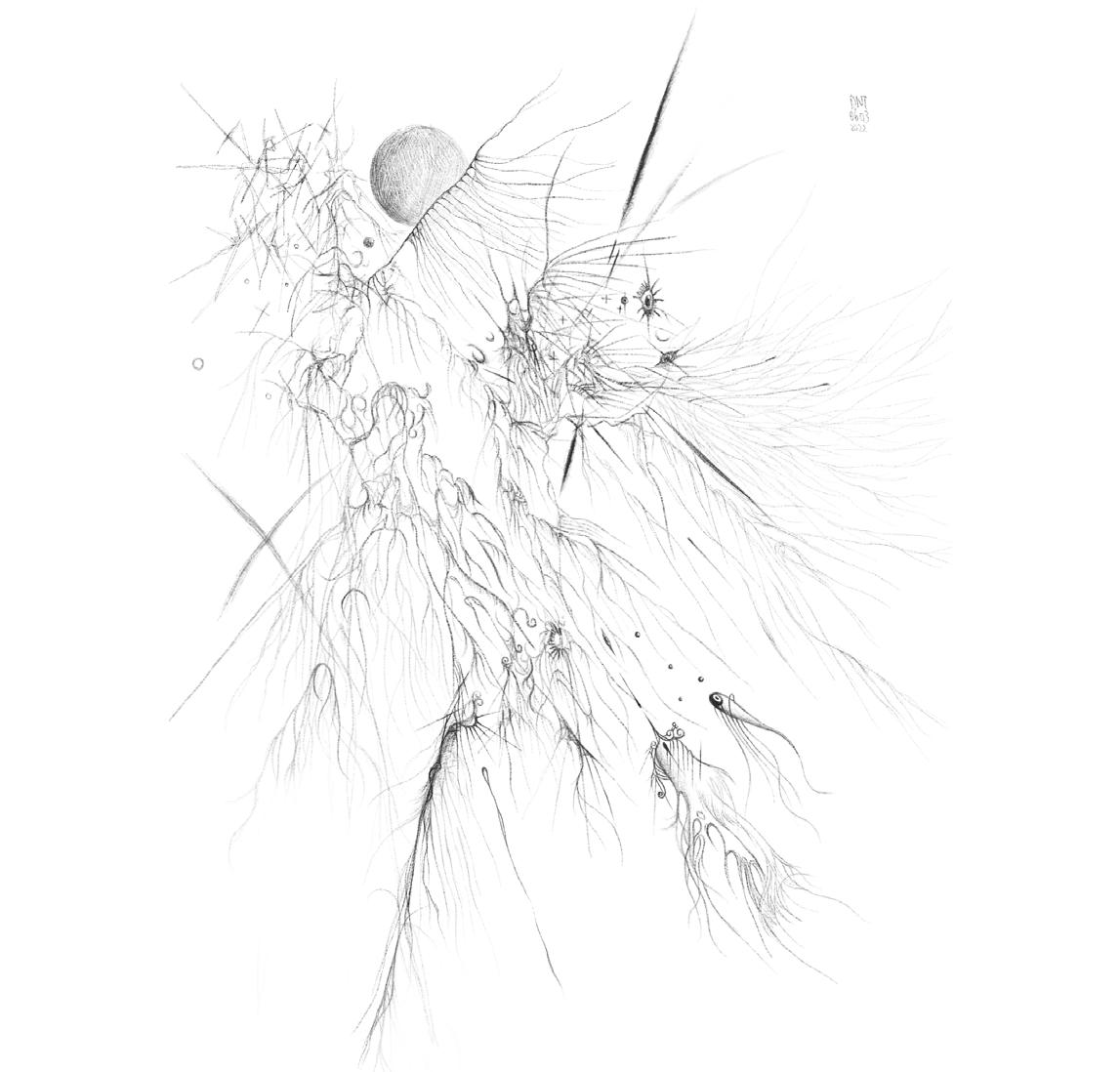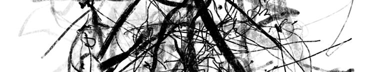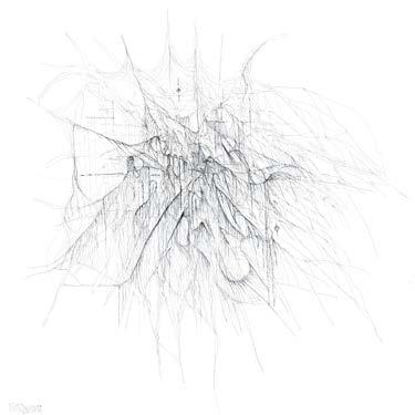 IPad as drawing tool allows me to draw while rotating. The paintings located at the four corners of the grid are the result of the rotation of the same picture. This placement simulates the visual process brought about by the tool.