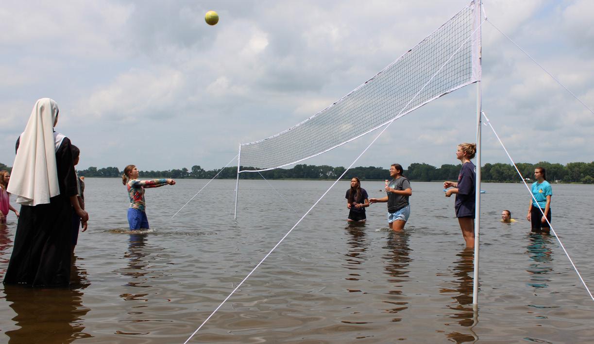 SLEEPY EYE, Minn. – As another summer comes to a close, so too do the summer activities and camps offered through the Diocese of New Ulm Office of Youth and Young Adult Ministry. At this year’s Camp Greatness for high school boys, campers played a competive game of Dodge Ball, or as campers call it, “Man Ball,” a camp favorite. The camp, filled to capacity, was held July 30-August 2 at Schoenstatt on the Lake in Sleepy Eye. The enthusiasm for the camp was so great there was a waiting list.
