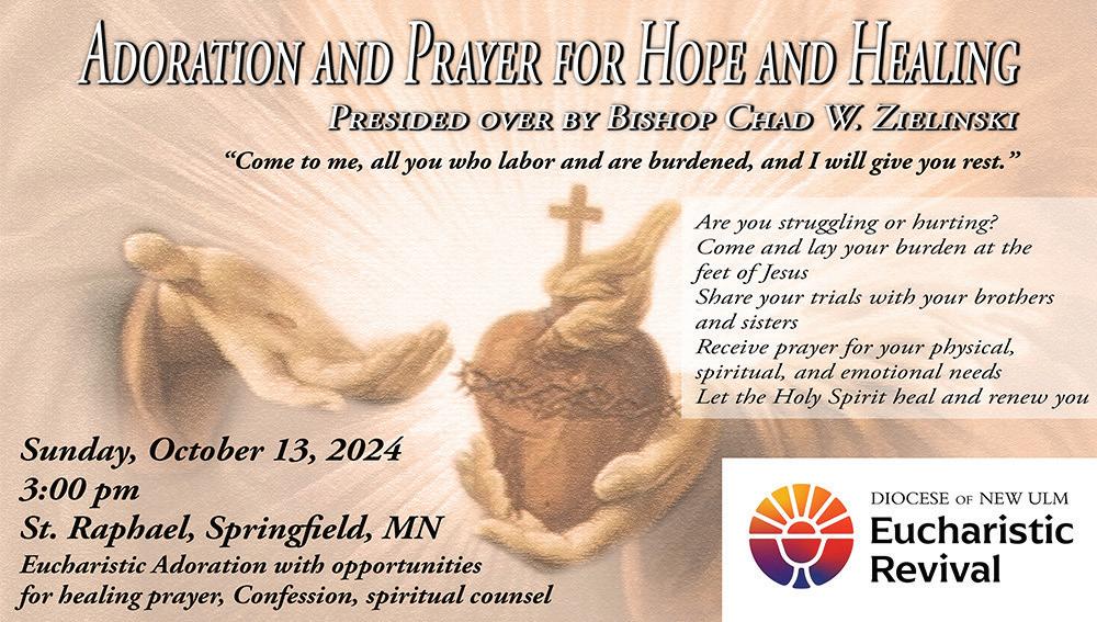 On Sept 27, 2022, I was installed as the fifth bishop of the Diocese of New Ulm. In my homily, I expressed enthusiasm that our diocese had joined the five other Minnesota (arch)dioceses as well as those nationwide in a threeyear Eucharistic Revival, which began on Corpus Christi Sunday, June 16, 2022. I invited everyone to focus on three movements of the heart and soul throughout this revival process: Hear God, Hand Him Your Heart, and Have Hope!