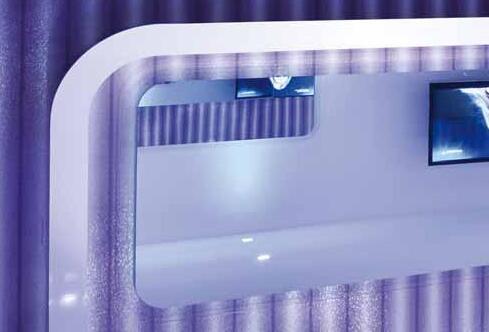 cosmolore leuchtet – zwei Leisten mit insgesamt 9O LEDs auf jeder Seite lassen die Acrylglasscheiben erstrahlen, ohne dabei Wärme zu erzeugen. cosmolore LED ist gleichermaßen Waschsessel und Lichtobjekt und kann zum Beispiel in einem leicht abgedunkelten SPA- Bereich eine subtile Wirkung erzeugen. Zudem besteht die Möglichkeit, die leuchtenden Flächen mit individuellen Motiven (zum Beispiel Logos) zu bedrucken. cosmolore can be illuminated – two rails with 9O LED altogether on both sides light up the plexiglass panel without creating any heat. cosmolore LED is a washing unit and a light object at the same time, fantastic for SPAs where it will create a subtle atmosphere for calm relaxation. In adition you have the possibility to print individual motives or logos on the plexiglass panels.