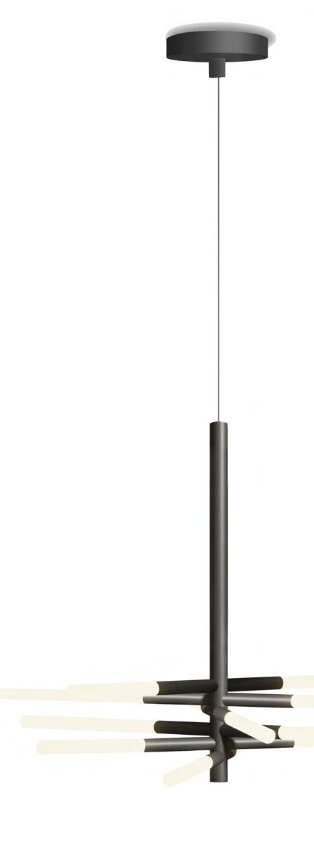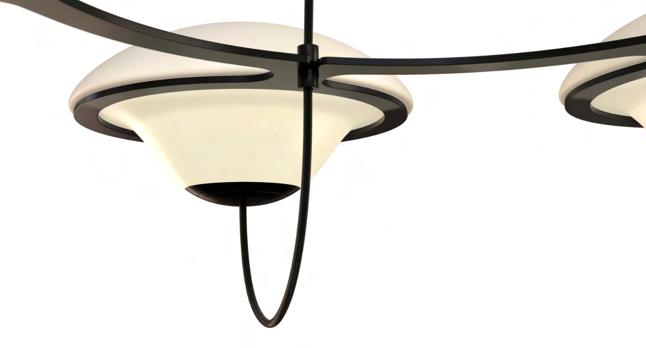 Las luminarias Groove son versátiles, flexibles y creativas en sus combinaciones. Sus difusores están disponibles en acabados blanco degradado y blanco satinado; y bronce y antracita para la estructura metálica. La versión de seis difusores es de acoplamiento móvil, pues las varillas metálicas en las que están montados los puntos de luz se deslizan para cambiar la rutina de lo estático y volverse un objeto nuevo. Puede modificarse un número indefinido de veces gracias al innovador sistema de enganche que permite el movimiento de las estructuras metálicas. El sistema mide hasta 150 cm de largo y 60 cm de alto, por lo que se convertirá en el protagonista de espacios amplios y poderosos de convivencia, tanto en entornos comerciales como residenciales.