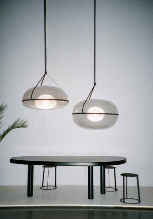 La arquitecta de interiores francesa ha creado una luminaria que evidencia el lado femenino de su diseño. Inspirada en la alta costura, su pieza se revela elegante y suave. Además, muestra una composición degradada desde el vacío hasta la plenitud, con variación de formas huecas y sencillas. Sybille de Margerie utilizó cuero acolchado para crear un sutil efecto 3D. Además, las esquinas redondeadas generan nuevos efectos de luz y sombra.