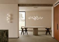 En coreano, maehwa significa flor de ciruelo. Una palabra que revela el inesperado don de la maravilla natural y delicada. En forma natural, las frondosas ramas cargadas de flores llenaban el espacio creando una composición original. Este fue el referente para el diseño de la estructura compositiva de la colección de Giopato & Coombes: orgánico. Además, la forma se desarrolla sobre la relación entre naturaleza y abstracción, buscando un equilibrio competitivo entre los elementos, jugando con la extensión y la presencia en el espacio. Esto dio como resultado distintas versiones de lámparas: de muro y suspensión ya sea verticales, horizontales o instalaciones redondas. Por otro lado, la composición de las lámparas revela una sinuosidad tridimensional.