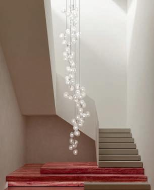 La estructura compositiva de las luminarias parece dispuesta al azar, a tono con la inspiración orgánica de la flor del ciruelo.