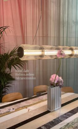 Aquí, la marca canadiense ANDlight tenía preparadas tres nuevas propuestas de iluminación: Iris, Column y Lobe. Tres novedades que no dejaron de maravillar a los visitantes. Alcova también fue testigo de la nueva colección Venus, una familia de lámparas colgantes diseñadas por Serena Confalonieri para Servomuto.