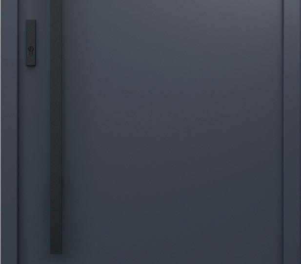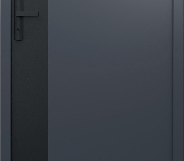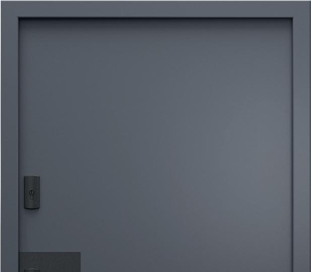 drzwi: skrzydło szer. ‘90’ / ‘100’ + ościeżnica z progiem, wyposażone w zamek listwowy z hakami, regulowane zaczepy, bolce antywyważeniowe oraz regulowane zawiasy 3D z nasadkami, akcesoria w kolorze srebrnym (inox): klamka z rozetą górną, komplet wkładek klasy B