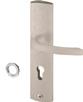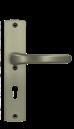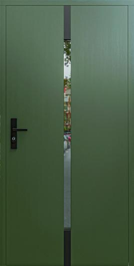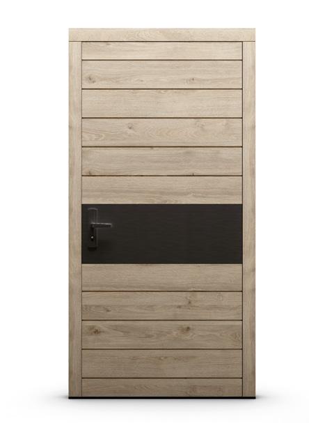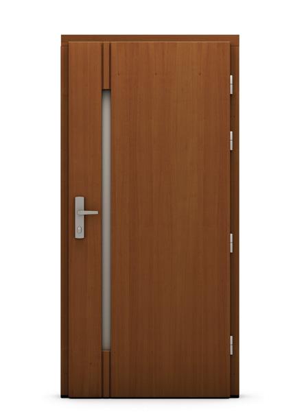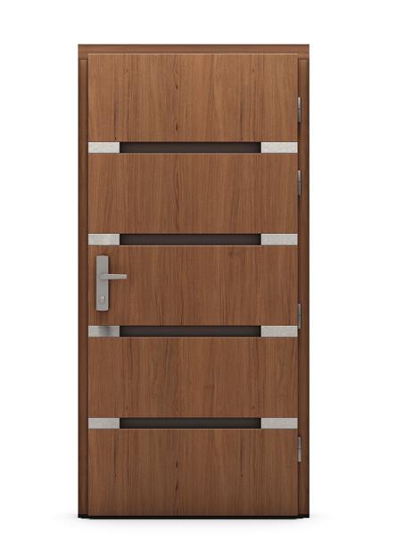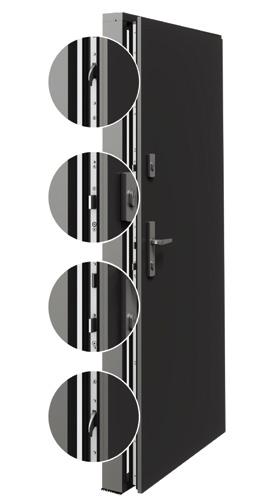 W wyposażeniu: wzmocnienia w postaci blach stalowych pod poszyciem, zamek listwowy pięciopunktowy, wzmocnione zawiasy, wkładki antywłamaniowe klasy C, klamka z szyldem z osłoną wkładki.