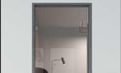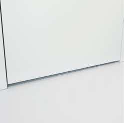 Przy zastosowaniu na skrzydle lustra, lacobelu, szkła satynowego. Wykończenie: anoda naturalna piaskowana. Pomiędzy okładziną szklaną (lacobel, szkło satynowe lakierowane, lustro) oraz okładziną indywidualną a obrzeżem może wystąpić po obwodzie szczelina do szer.1mm. When using mirror, lacobel, satin lacquered glass. Between glass cladding (lacobel, satin lacquered glass, mirror) and also individual cladding, there may be a gap up to 1 mm on the perimeter.
