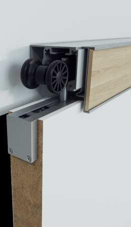 Drzwi naścienne przesuwne sufitowe ze skrzydłem drewnianym lub szklanym / Wall-mounted ceiling sliding doors with wooden door leaf or glass pane