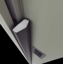 Wokół całego skrzydła drewnianego umieszczone jest obrzeże z tworzywa o grubości do 1 mm, klejone maszynowo, wykańczające powierzchnię i chroniąceprzedwilgocią. Around the entire wooden leaf, up to 1 mm thick, machineglued plastic edging to finish the surface and protect against moisture.