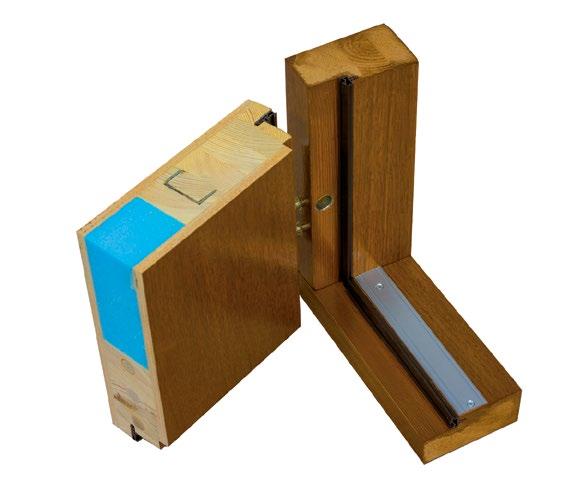 Rama skrzydła z drewna klejonego warstwowo Wymiary zewnętrzne dla drzwi „90” - wysokość 209 cm, szerokość 100 cm Skrzydło oklejone naturalną, 5 warstwową sklejką wodoodporną o grubości 4 mm Drzwi w systemie przylgowym