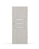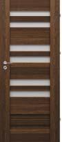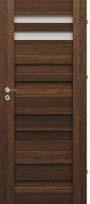 Drzwi pokryte wysokiej jakości laminatem dwuwarstwowym składającym się z papieru zaimpregnowanego w termoutwardzalnych żywicach oraz materiału podkładowego nadającego produktowi elastyczność. Laminat charakteryzuje się wysoką twardością powierzchni, wytrzymałością na zarysowania i ścieralność oraz – dzięki zastosowaniu mechanicznej struktury na powierzchni koloru Szarego Świetlistego i Orzecha Włoskiego – efektem naturalnego drewna.