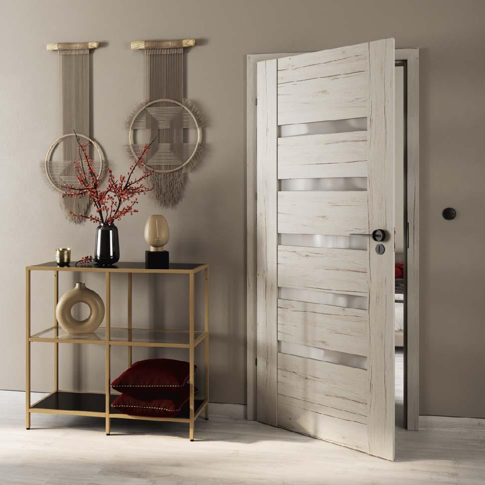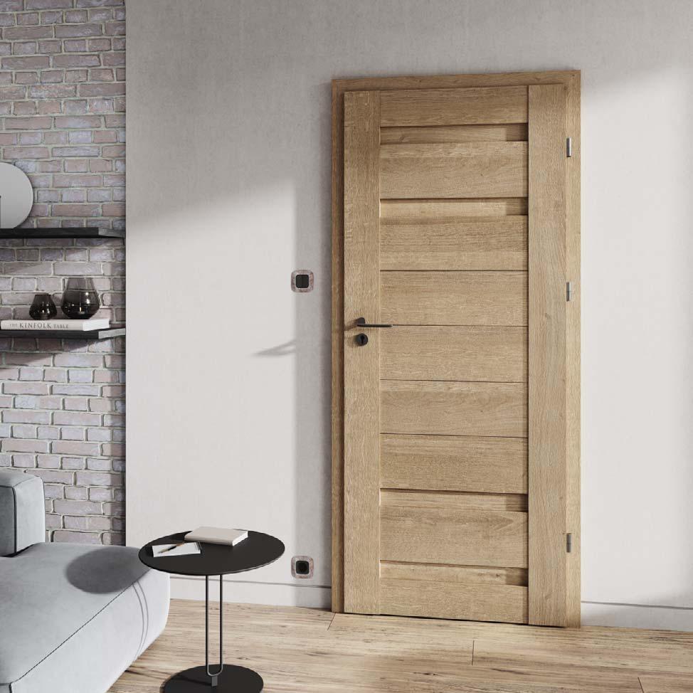 Zarówno skrzydła drzwiowe, jak i ościeżnice okleinowane są odporną na ścieranie folią finish, odwzorowującą rysunek drewna. Trwałe i starannie wykonane, są idealną propozycją dla Klientów szukających efektownych