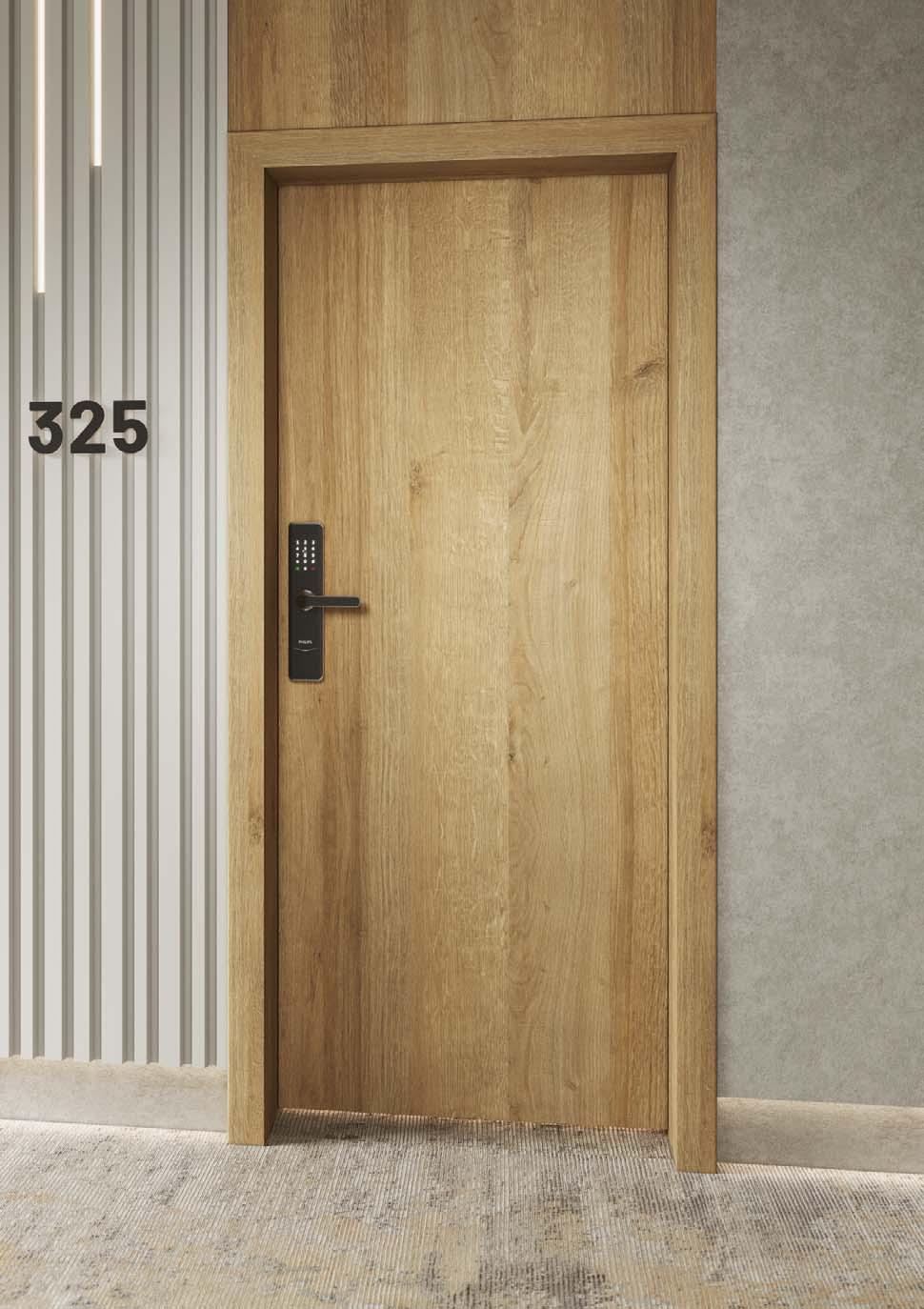 Skrzydła drzwiowe oraz ościeżnice wykończone są niezwykle trwałym fornirem syntetycznym CLPL. Dekor pokryty jest żywicą melaminowo-akrylowo-poliuretanową, która doskonale zabezpiecza powierzchnię przed ścieraniem, uszkodzeniami, a także działaniem światła. Wysokiej jakości fornir do złudzenia imituje piękny, naturalny rysunek drewna, co sprawia, że rozwiązanie to wybierane jest do domów, mieszkań, szkół, biur i hoteli.