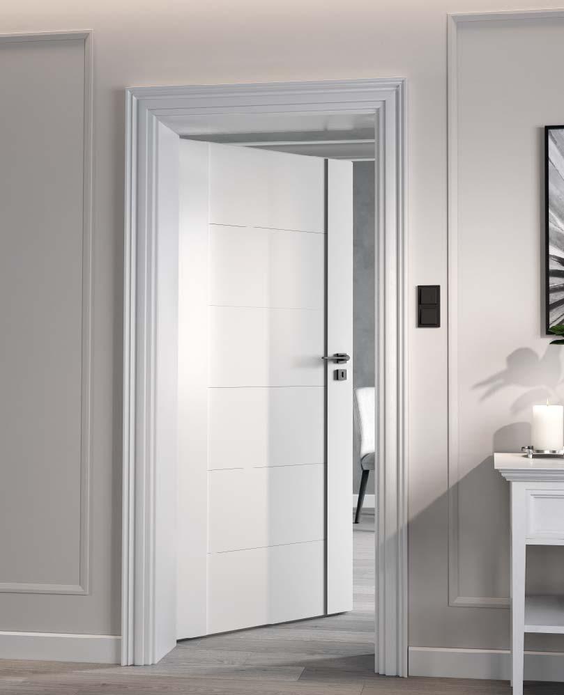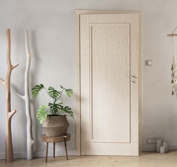 Skrzydła drzwiowe wykończone są wysokiej jakości okleiną PVC ze strukturą naturalnego drewna (z wyjątkiem koloru Szary Supermat). Wysoka odporność na uszkodzenia mechaniczne, zabrudzenia i promieniowanie UV sprawia, że drzwi doskonale sprawdzą się zarówno w budynkach mieszkalnych, jak i w obiektach użyteczności publicznej. Ościeżnice są produkowane w grupie kolorystycznej PP.