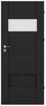 Drzwi wykończone folią dekoracyjną na bazie polipropylenu, której powierzchnia pokryta jest warstwą transparentnego lakieru termoutwardzalnego zapewniającego odporność na zarysowania. Produkt wysokiej jakości, znajdujący zastosowanie zarówno w budynkach o dużym natężeniu ruchu, jak i budynkach mieszkalnych.