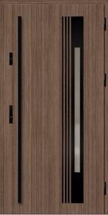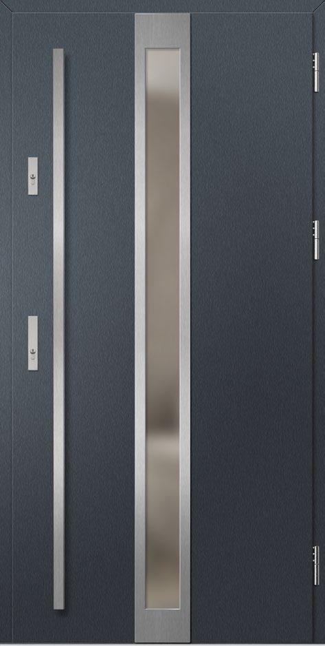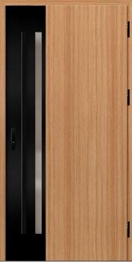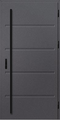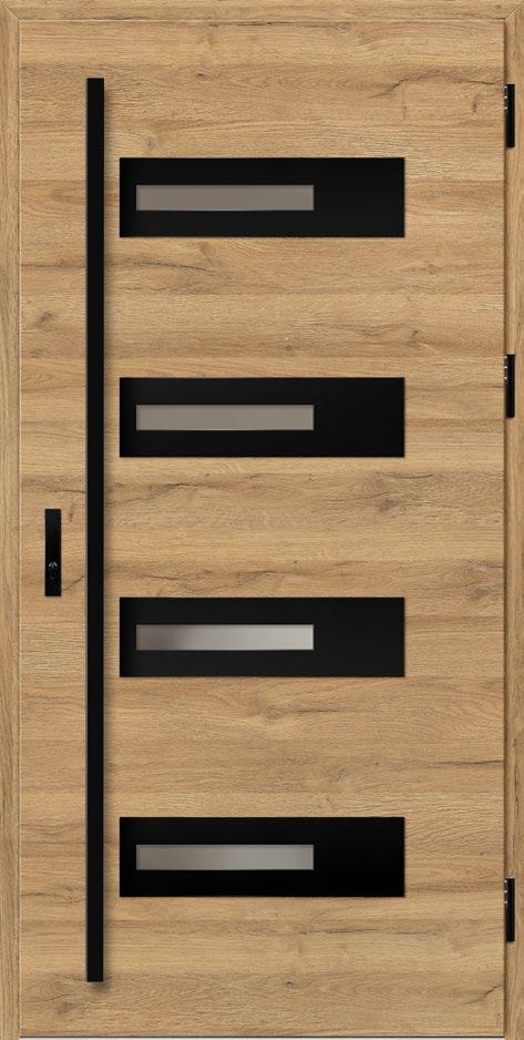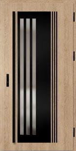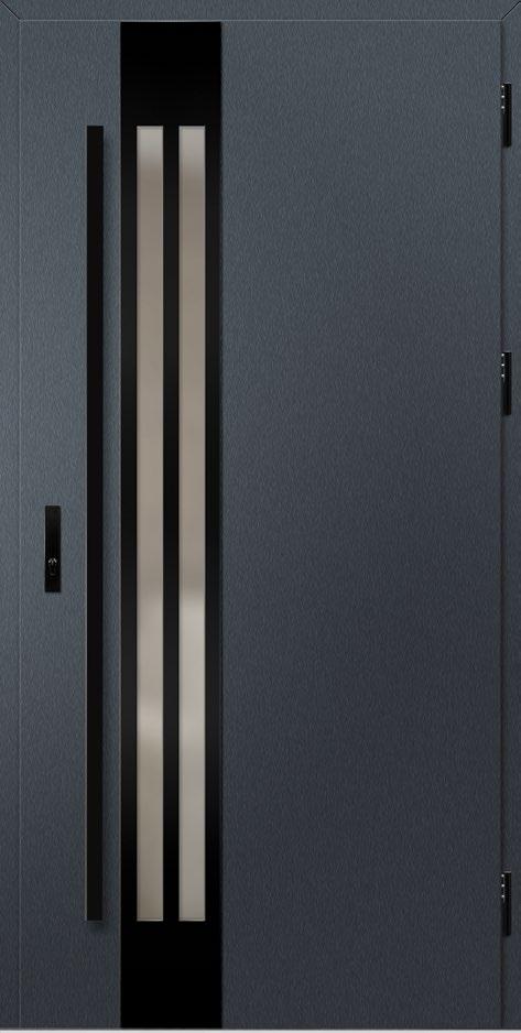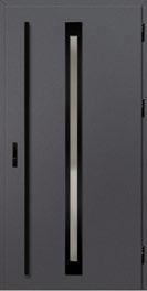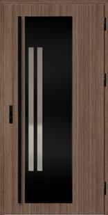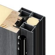 2. Ościeżnica aluminiowa, malowana na czarno i oklejona w kolorze skrzydła drzwiowego wyposażona w ciepły próg aluminiowy i pełną listwę zaczepową z regulacją docisku.