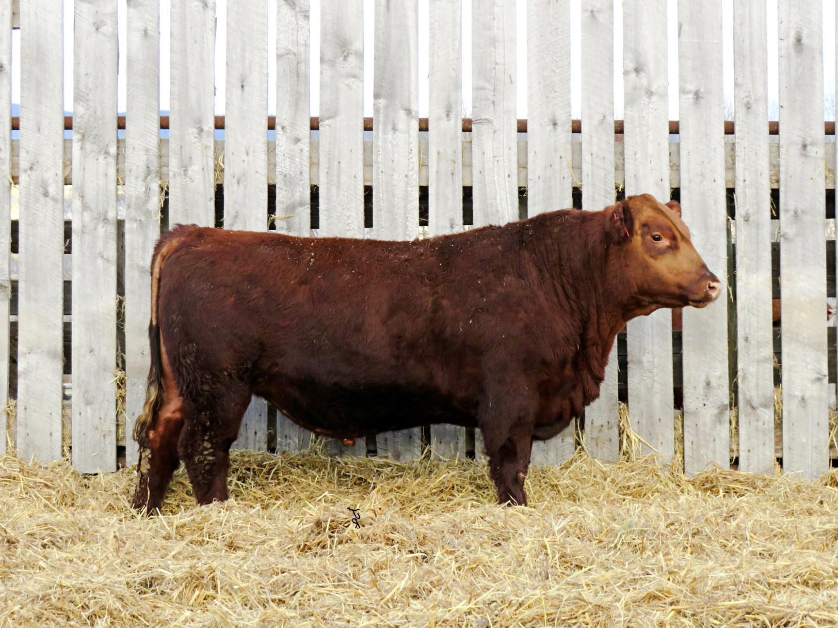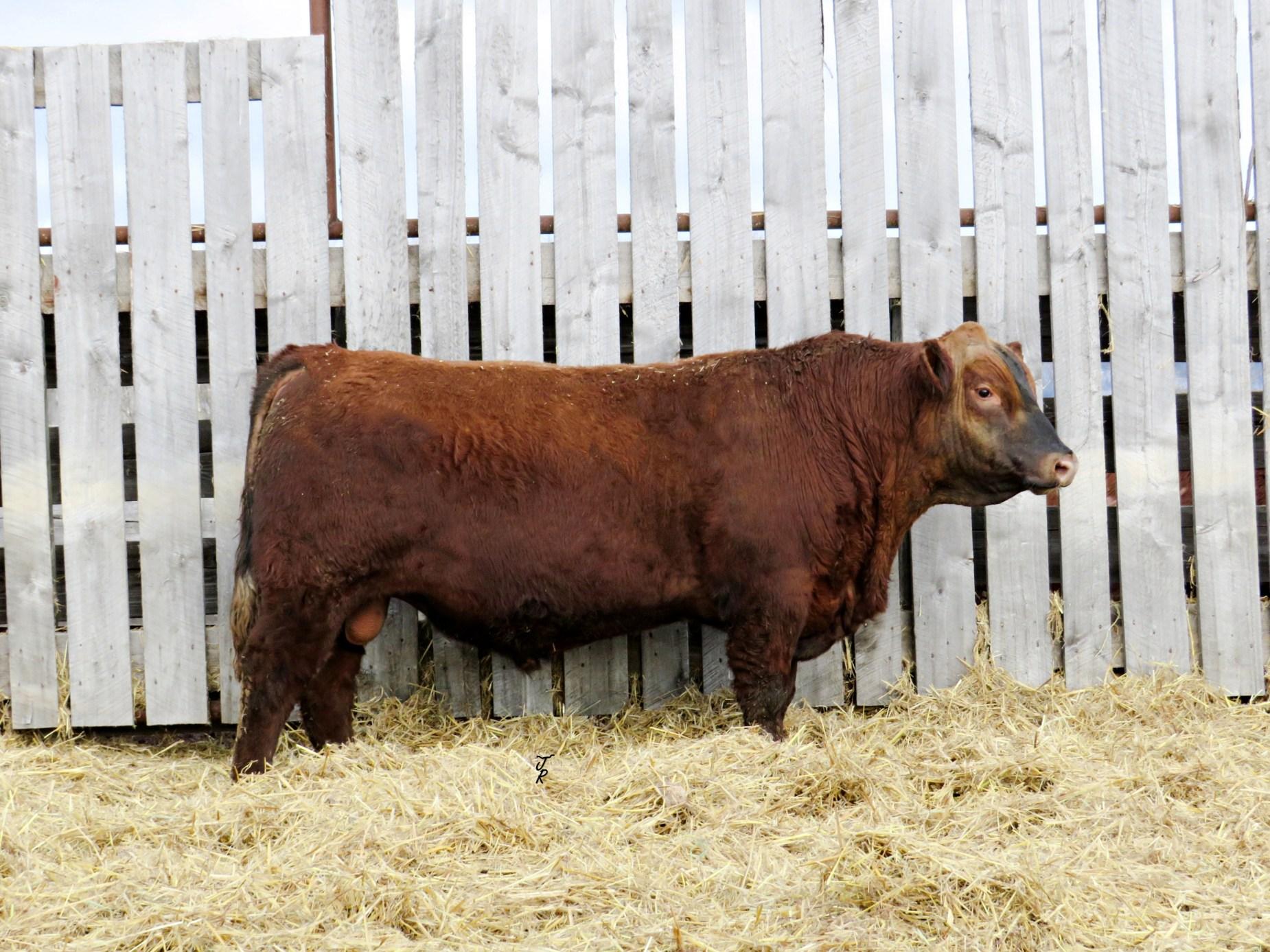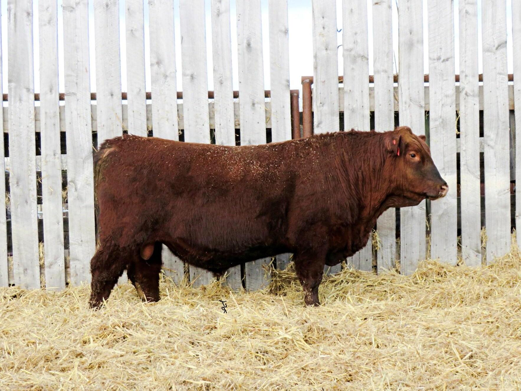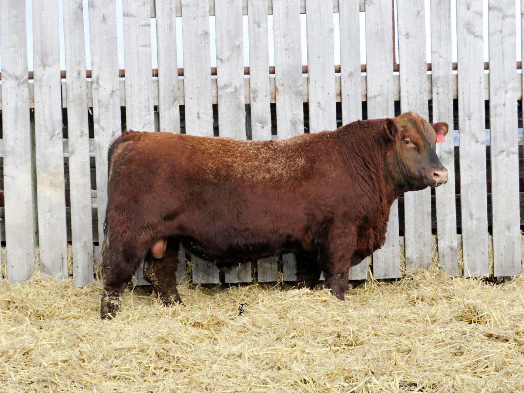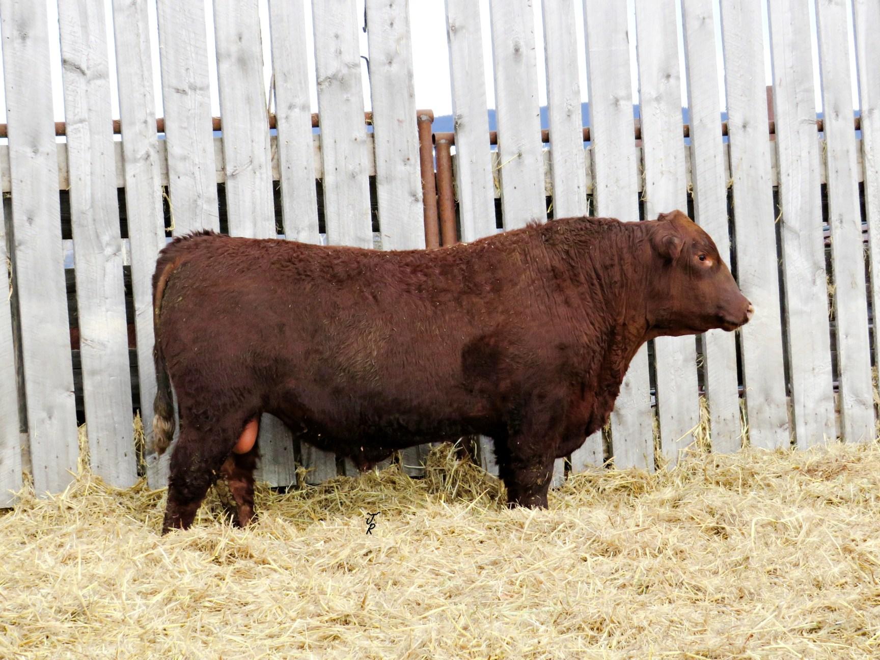 Here is another moderate framed bull with beautiful dark cherry red colour to him. With his smaller head he will be a fantastic prospect for an all around bull.