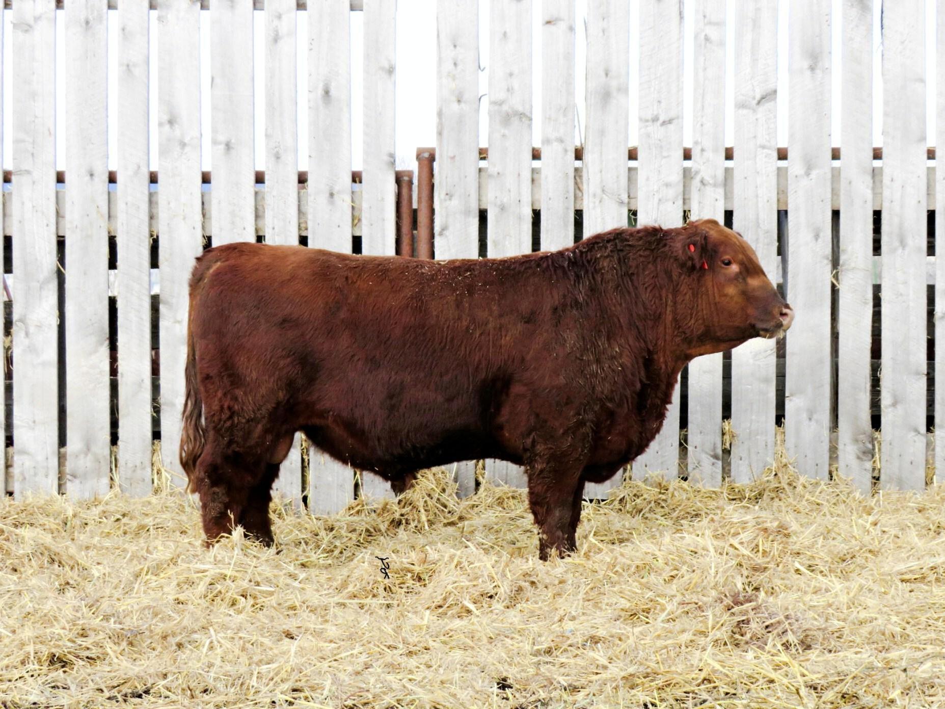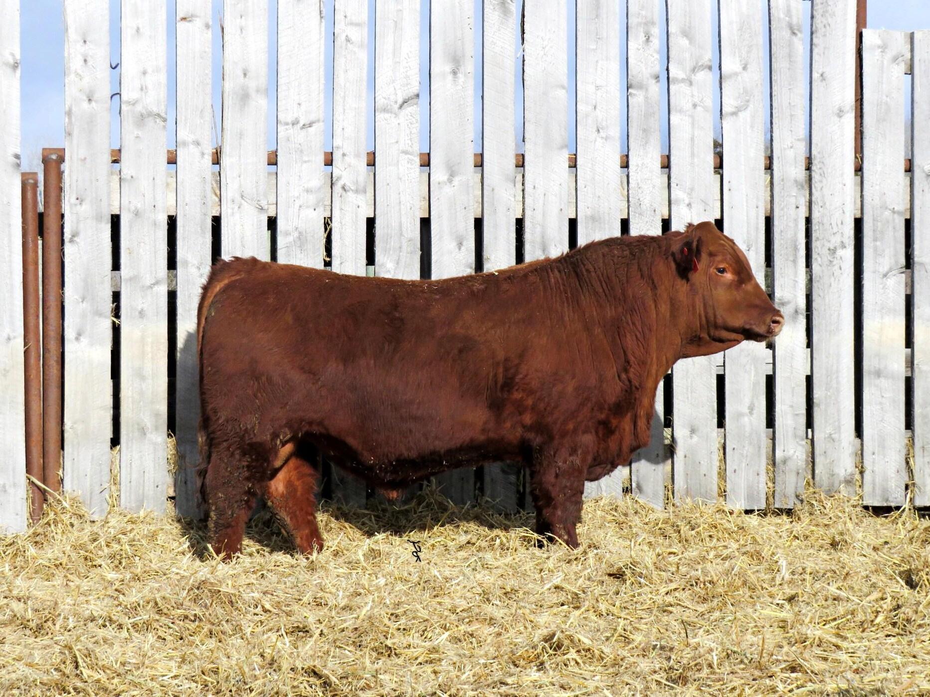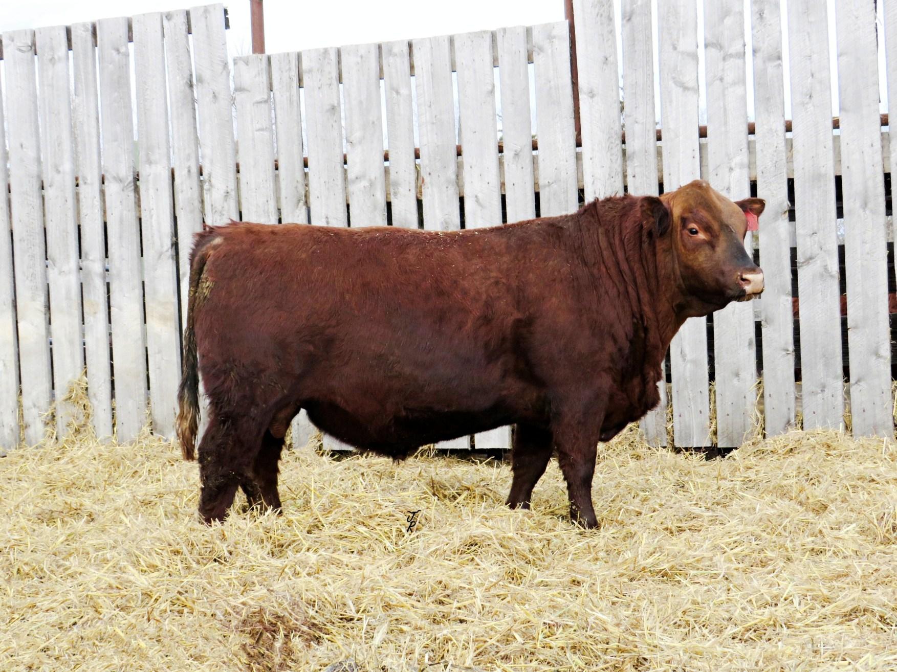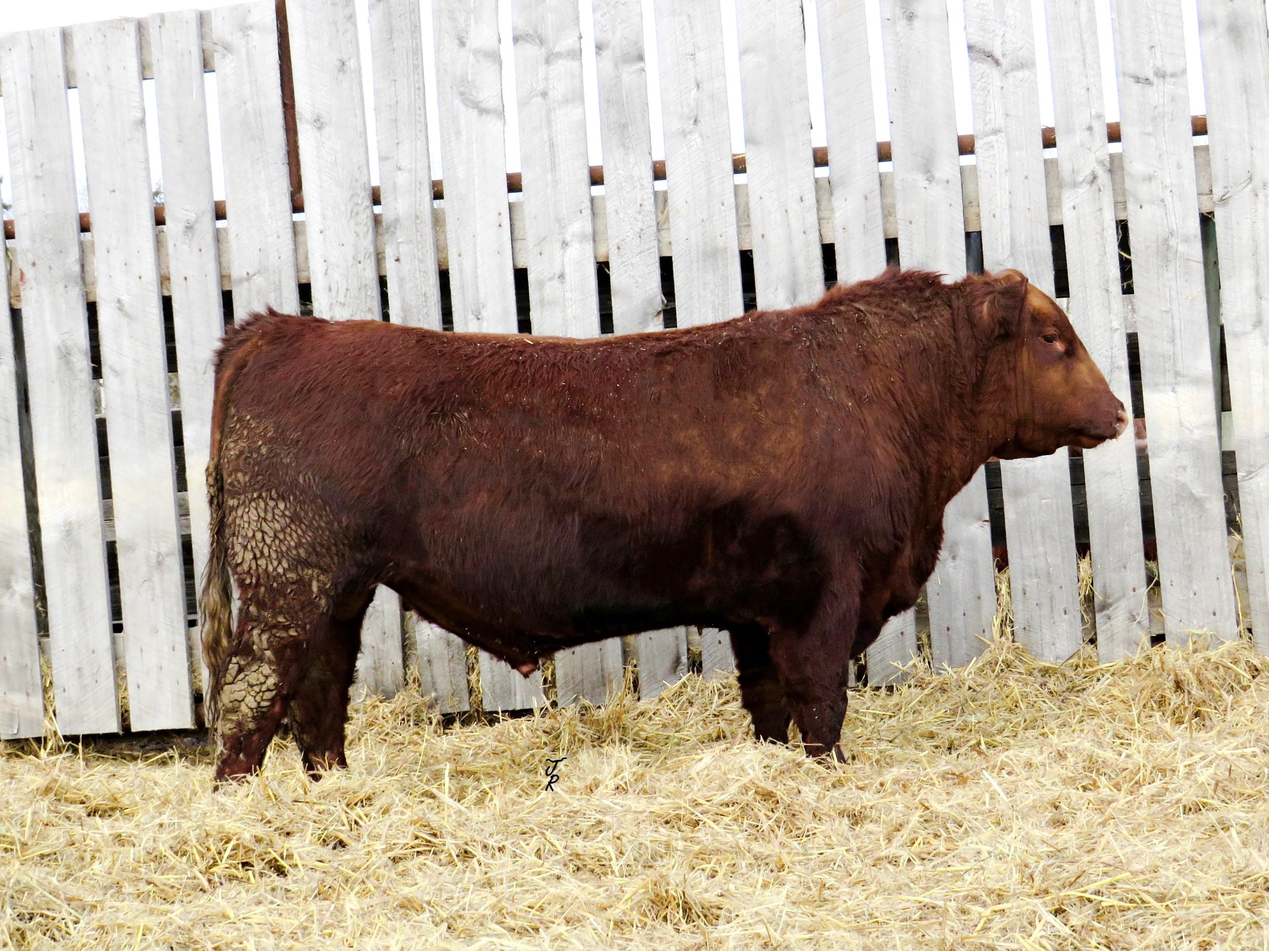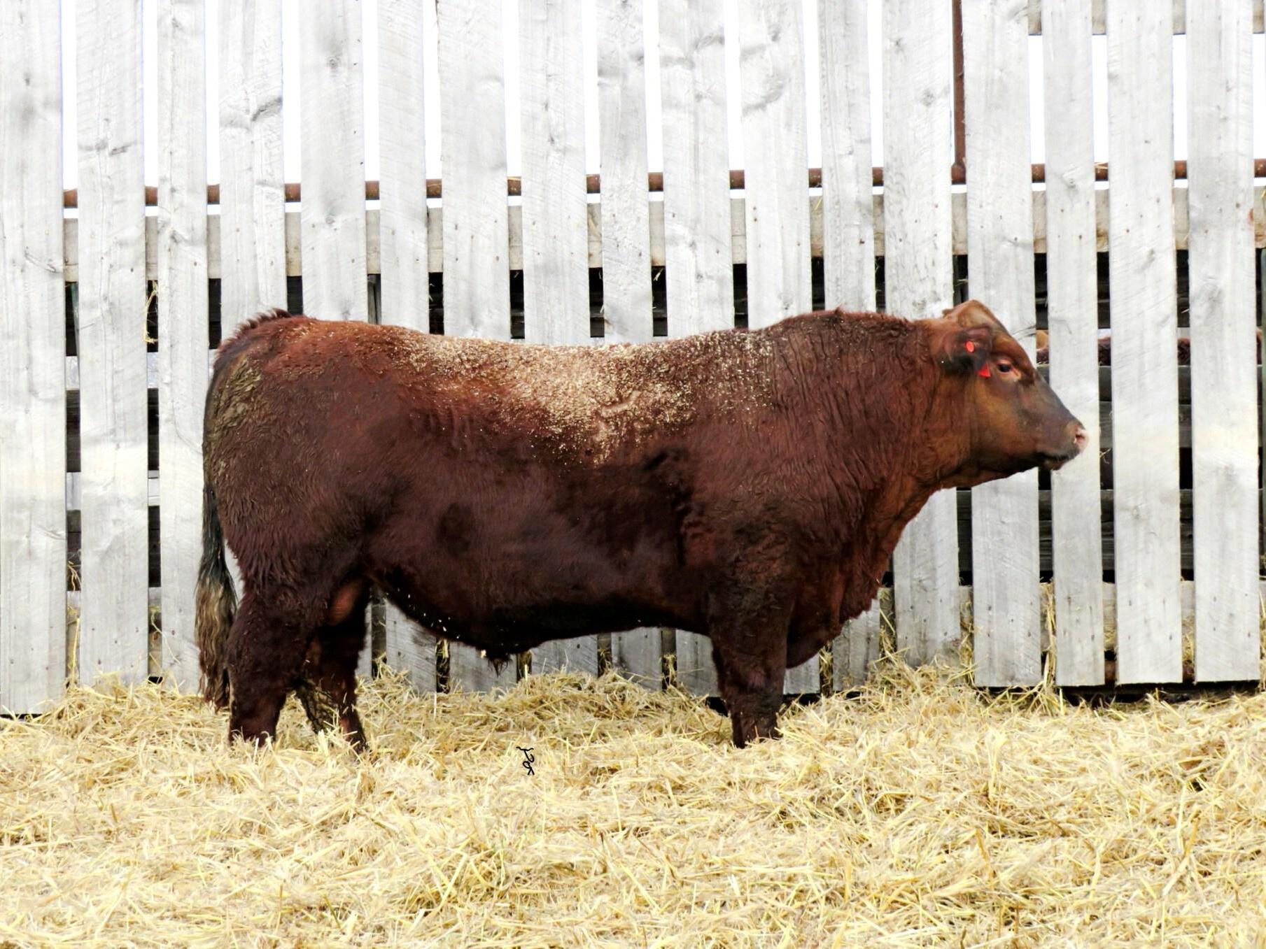 This bull is dark cherry red and has a long body with lots of depth to him. With his taller frame he would make an excellent candidate for mature cows and will add pay weight to your weaned calves.