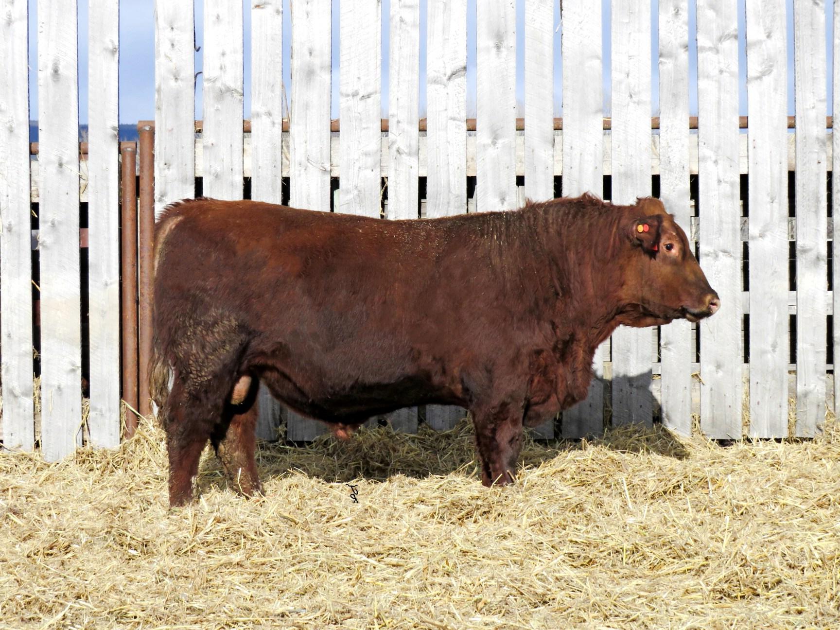 This power bull is well proportioned with plenty of depth and thickness. With his long body he will add plenty of growth to his future calf crops.