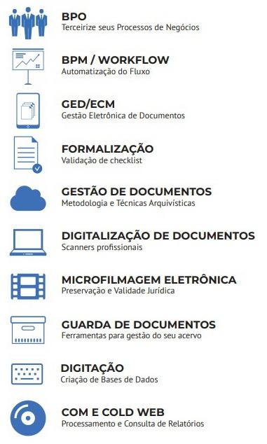 conteúdo (ECM e BPM) a GRM também oferece serviços de guarda e gerenciamento de documentos e serviços de digitalização.