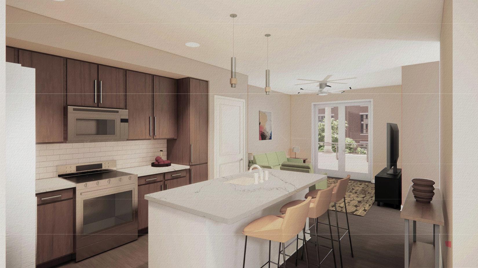 This project is a 175-unit, 5.5-story multifamily development located at the intersection of Broad Street and Daniel Morgan Way in downtown Spartanburg, South Carolina. Situated south of the firm’s new hotel and second office building and across from West Broad Street, the building is organized around a six-level precast parking garage and includes approximately 10,500 square feet of lobby, leasing, and amenity spaces. Responding to its urban context, the design employs two complementary architectural expressions that break down the building massing and reinforce a pedestrian-scaled, engaging street frontage.