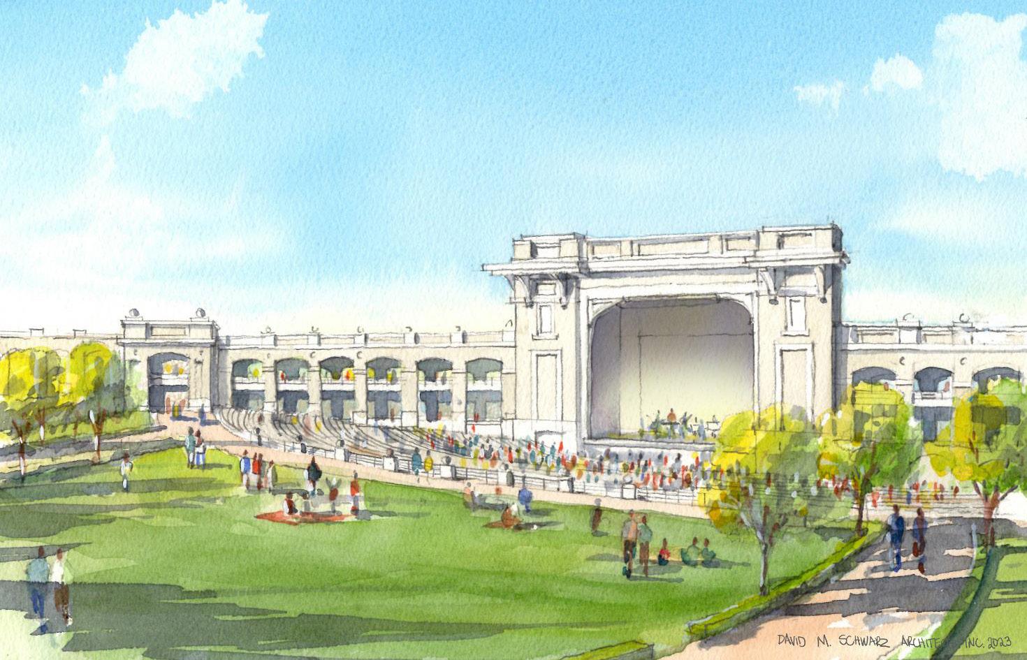 The design and material strategy support the client’s vision for a flexible civic amphitheater that serves the Elkhart community and establishes a lasting public landmark. Conceived to function as both a performance venue and an urban park, the project accommodates ticketed shows, free community events, and everyday public use while meeting contemporary acoustic, technological, and performance requirements at its intended capacity.