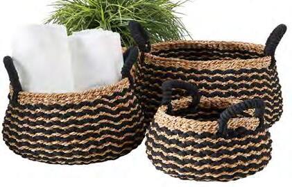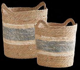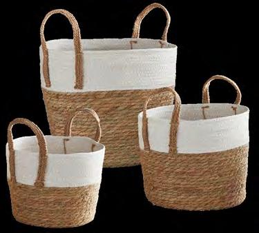 Natural With Black Handles Storage Tote N0990 Canvas | Suede Leather Handles Laminated Lining | 14" Dia x 13.5" H Spot Clean Only | min 4 | Was $12.00 Clearance $7.29