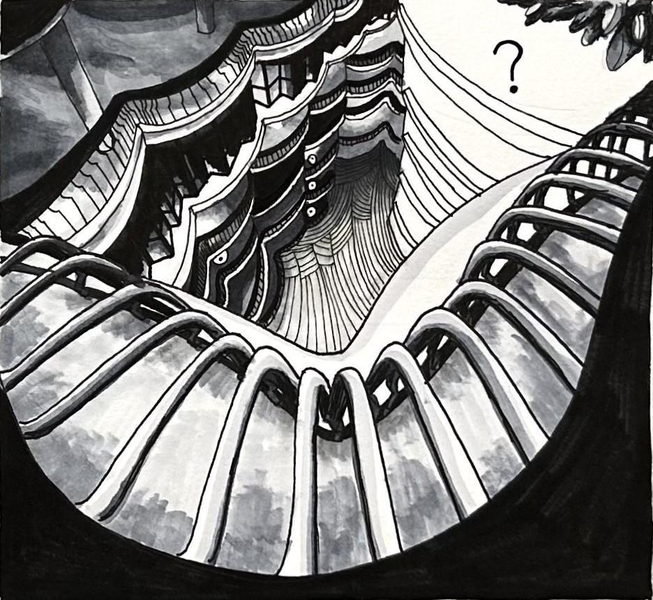 Orientation of staircase: facing HDB’s main entrance, hawkers centers, the end of the skywalk.