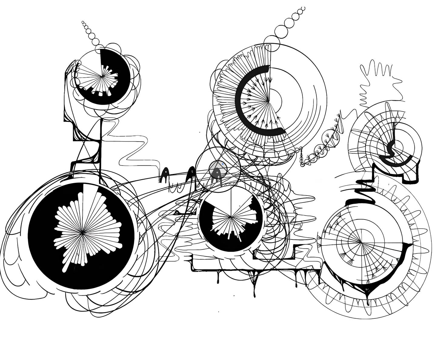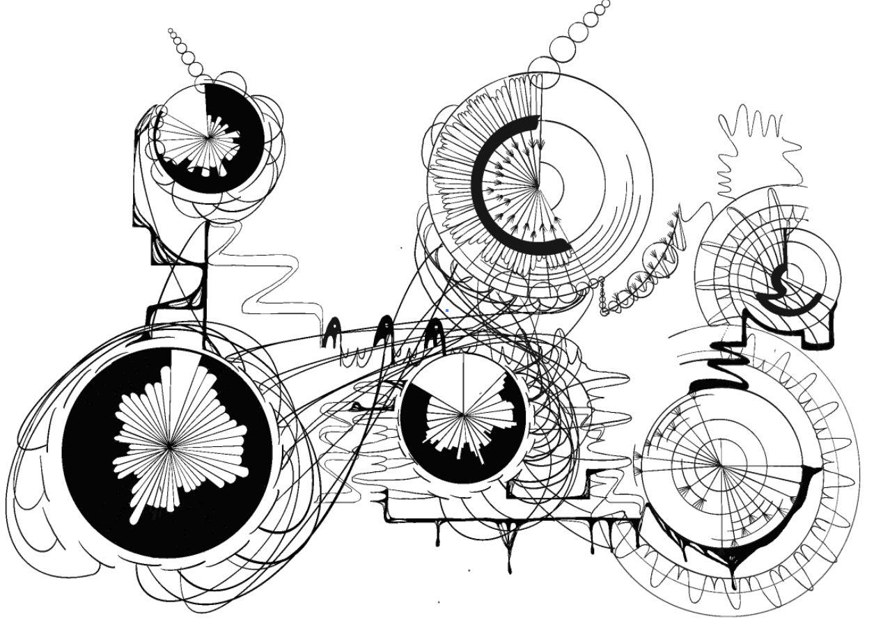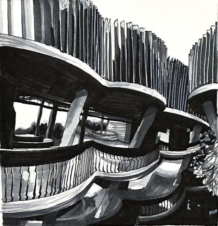 Black foam board was used as the base for these models, further reinforcing their rigid and linear qualities.